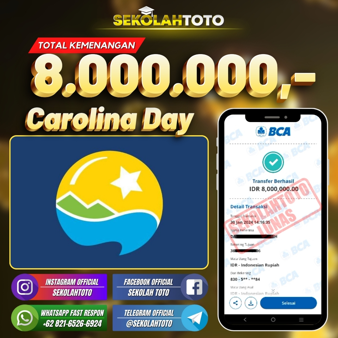 BUKTI JACKPOT PASARAN CAROLINA DAY 4 Februari 2024 Posted by kepsektoto Carolina Day Selasa, 30 Januari 2024 RP. 8.000.000,- Selamat Kepada Pemenang. Salam JP, Sekolahtoto ! Updated: 4 Februari 2024 at 14:55 ◀ BUKTI JACKPOT PASARAN HONGKONG BUKTI JACKPOT LIVE CASINO ▶