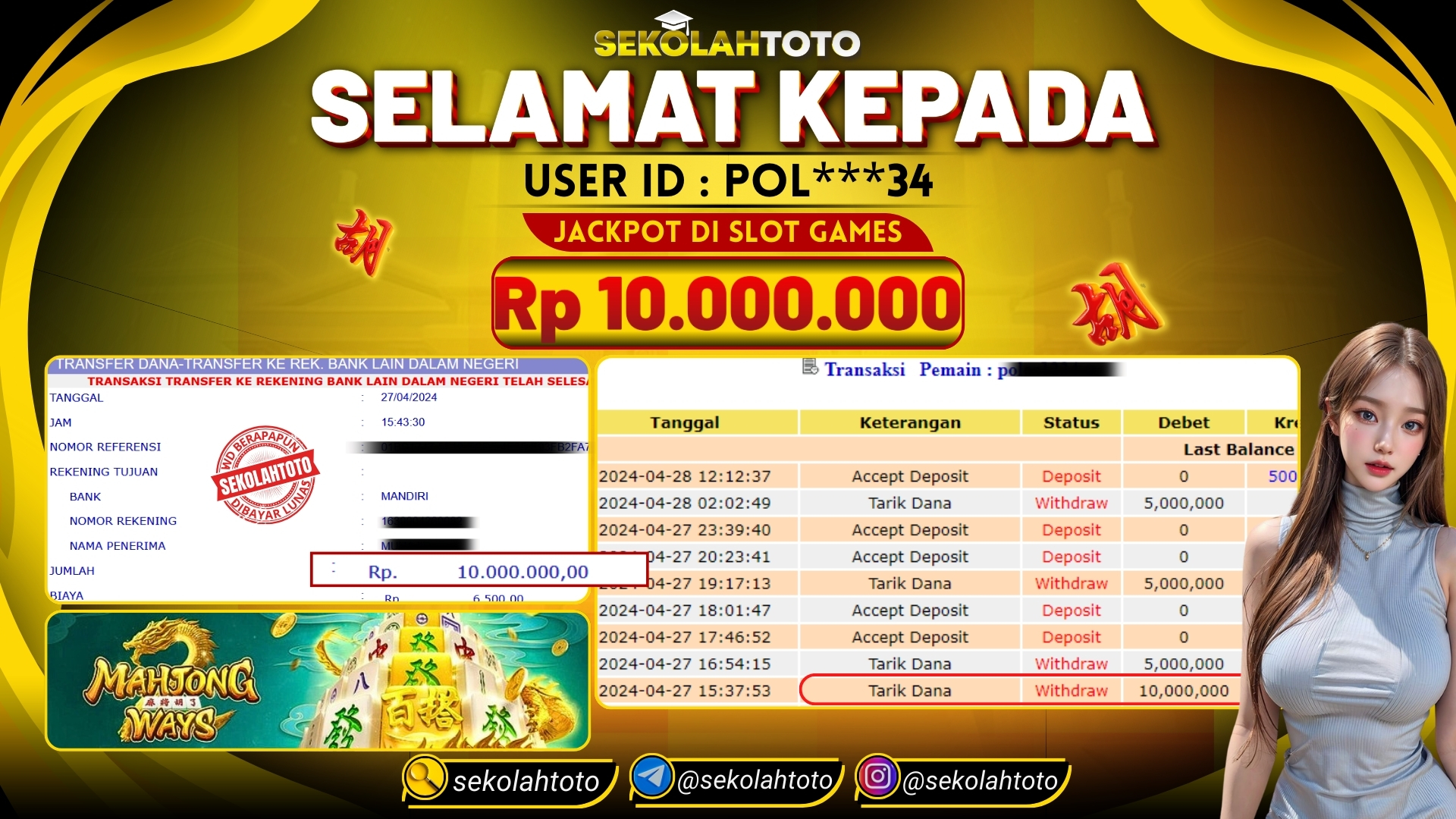 BUKTI JACKPOT SLOT GAMES 5 Mei 2024 Posted by kepsektoto Mahjong Ways Sabtu, 27 April 2024 RP. 10.000.000,- Selamat Kepada Pemenang. Salam JP, Sekolahtoto ! Updated: 5 Mei 2024 at 22:34 ◀ Prediksi Togel Toto Macau Hari Ini BUKTI JACKPOT SLOT GAMES ▶