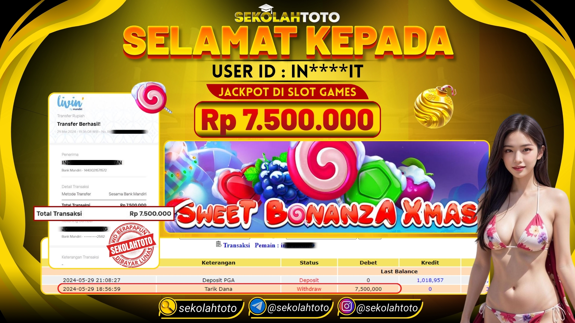 BUKTI JACKPOT SLOT GAMES 30 Mei 2024 Posted by kepsektoto Sweet Bonanza XMAS Rabu, 29 Mei 2024 RP. 7.500.000,- Selamat Kepada Pemenang. Salam JP, Sekolahtoto ! Updated: 30 Mei 2024 at 23:17 ◀ Prediksi Togel Toto Macau Hari Ini BUKTI JACKPOT SLOT GAMES ▶