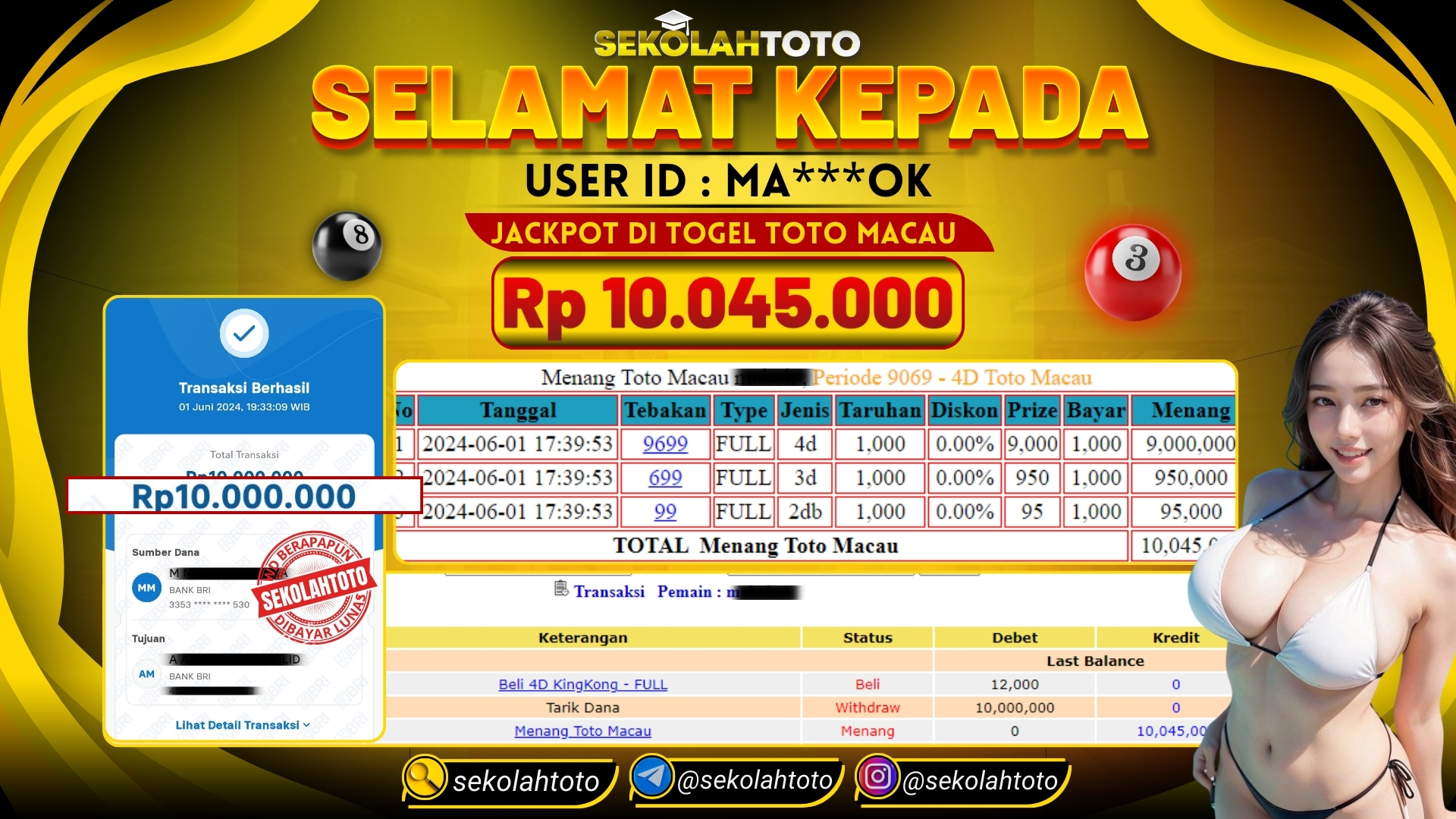 BUKTI JACKPOT PASARAN TOTO MACAU 1 Juni 2024 Posted by kepsektoto Toto Macau Sabtu, 01 Juni 2024 RP. 10.045.000,- Selamat Kepada Pemenang. Salam JP, Sekolahtoto ! Updated: 1 Juni 2024 at 23:28 ◀ BUKTI JACKPOT SLOT GAMES Prediksi Togel Bullseye Pools Hari Ini ▶