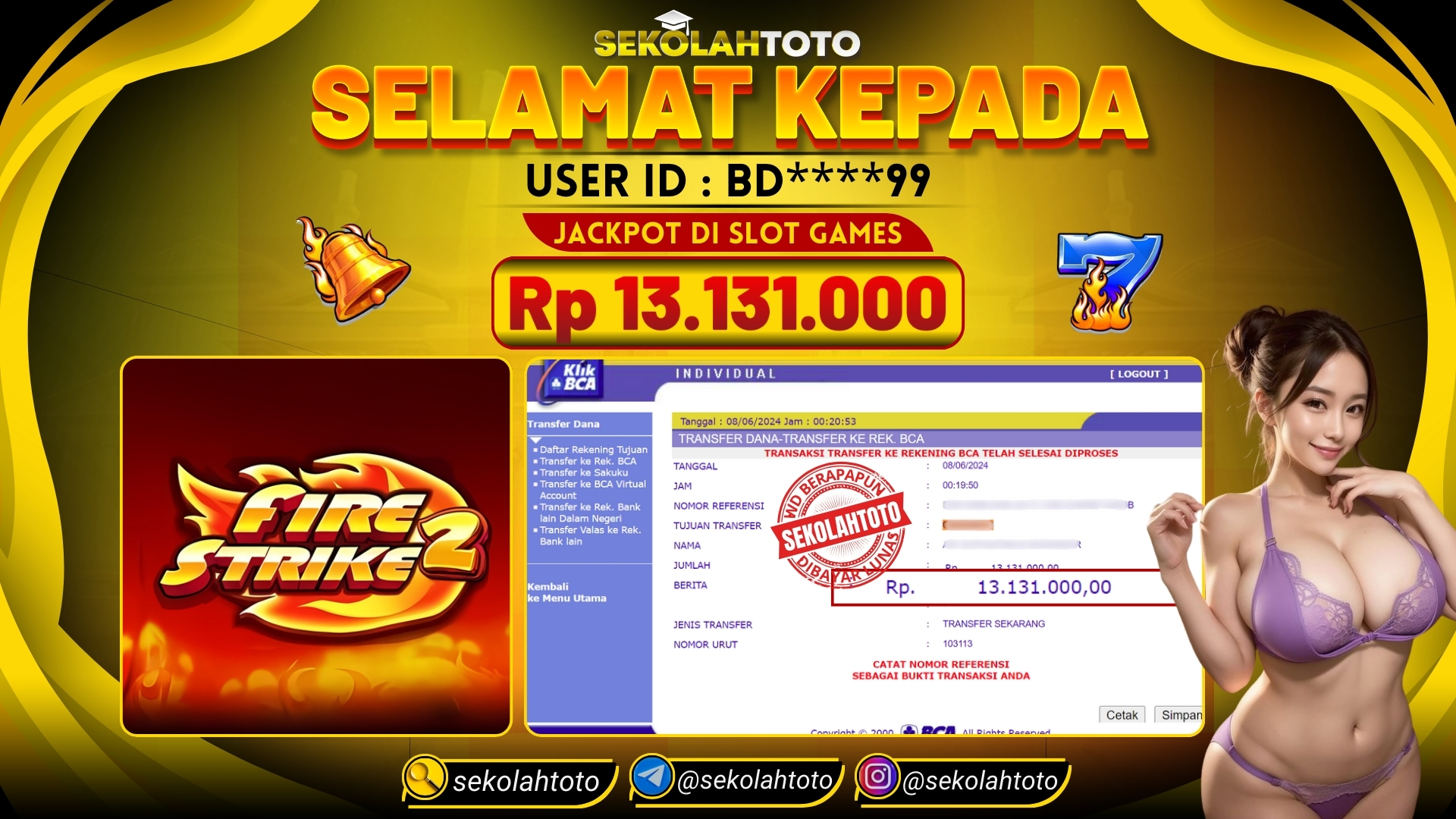 BUKTI JACKPOT SLOT GAMES 9 Juni 2024 Posted by kepsektoto Fire Strike 2 Sabtu, 08 Juni 2024 RP. 13.131.000,- Selamat Kepada Pemenang. Salam JP, Sekolahtoto ! Updated: 9 Juni 2024 at 23:30 ◀ BUKTI JACKPOT SLOT GAMES BUKTI JACKPOT SLOT GAMES ▶
