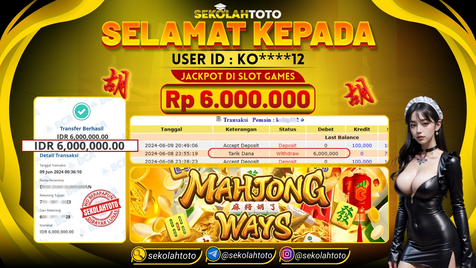 BUKTI JACKPOT SLOT GAMES 10 Juni 2024 Posted by kepsektoto Mahjong Ways Minggu, 09 Juni 2024 RP. 6.000.000,- Selamat Kepada Pemenang. Salam JP, Sekolahtoto ! Updated: 10 Juni 2024 at 23:32 ◀ Prediksi Togel Toto Macau Hari Ini BUKTI JACKPOT SLOT GAMES ▶