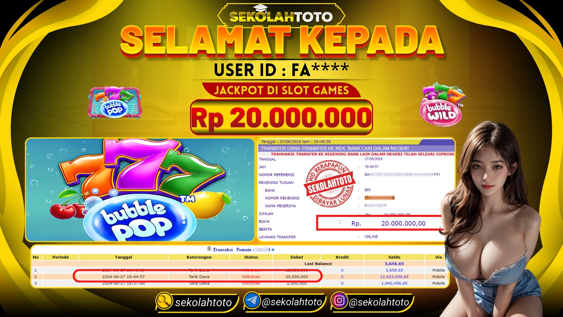 BUKTI JACKPOT SLOT GAMES 27 Juni 2024 Posted by kepsektoto Bubble Pop Kamis, 27 Juni 2024 RP. 20.000.000,- Selamat Kepada Pemenang. Salam JP, Sekolahtoto ! Updated: 27 Juni 2024 at 23:25 ◀ BUKTI JACKPOT SLOT GAMES Prediksi Togel Bullseye Pools Hari Ini ▶