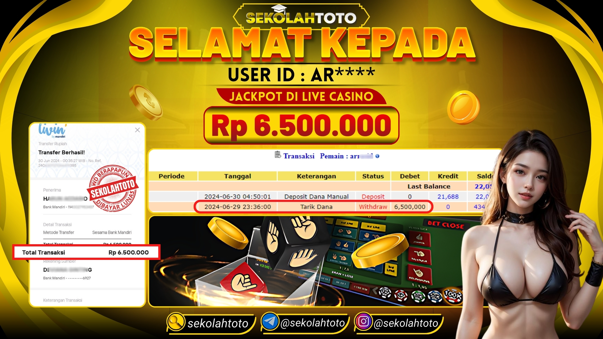 BUKTI JACKPOT LIVE CASINO 30 Juni 2024 Posted by kepsektoto Suwit Games Minggu, 30 Juni 2024 RP. 6.500.000,- Selamat Kepada Pemenang. Salam JP, Sekolahtoto ! Updated: 30 Juni 2024 at 23:13 ◀ Prediksi Togel Toto Macau Hari Ini BUKTI JACKPOT PASARAN HONGKONG ▶