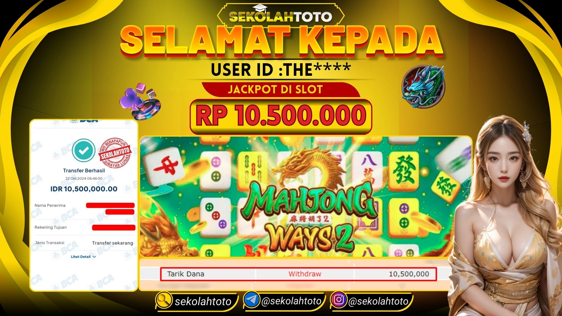 BUKTI PEMBAYARAN JACKPOT SLOT 22 Oktober 2024 Posted by kepsektoto Mahjong Ways SELASA , 22 OKTOBER 2024 RP. 10,500,000,- Selamat Kepada Pemenang. Salam JP, Sekolahtoto ! Updated: 22 Oktober 2024 at 07:12 ◀ Prediksi Togel Toto Macau Hari Ini BUKTI PEMBAYARAN JACKPOT SLOT ▶