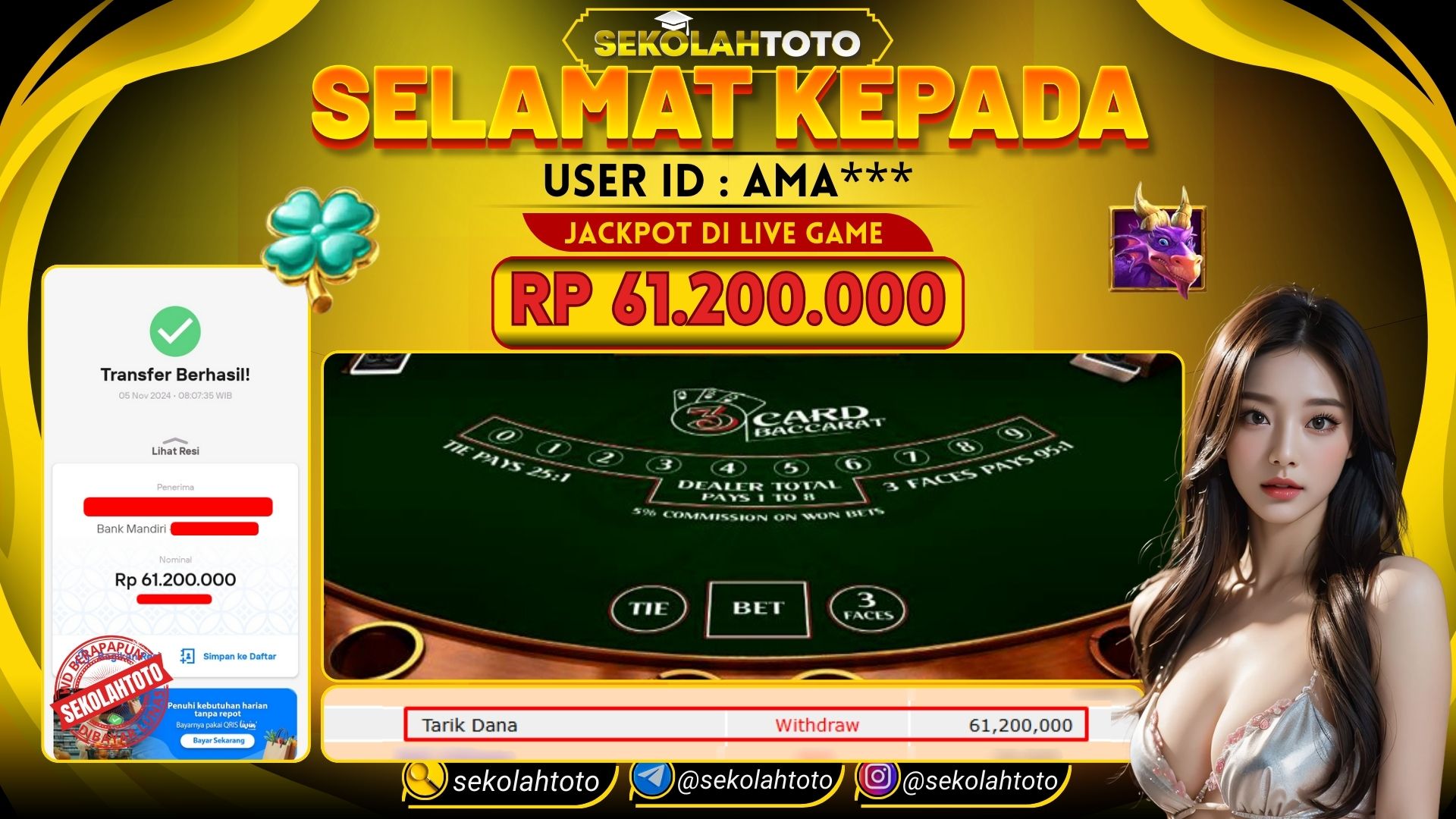 BUKTI PEMBAYARAN JACKPOT LIVE GAME 5 November 2024 Posted by kepsektoto BACCARAT 3 IDNLIVE SELASA , 05 NOVEMBER 2024 RP. 61,200,000,- Selamat Kepada Pemenang. Salam JP, Sekolahtoto ! Updated: 5 November 2024 at 08:25 ◀ Prediksi Togel Toto Macau Hari Ini BUKTI PEMBAYARAN JACKPOT LIVE GAME ▶