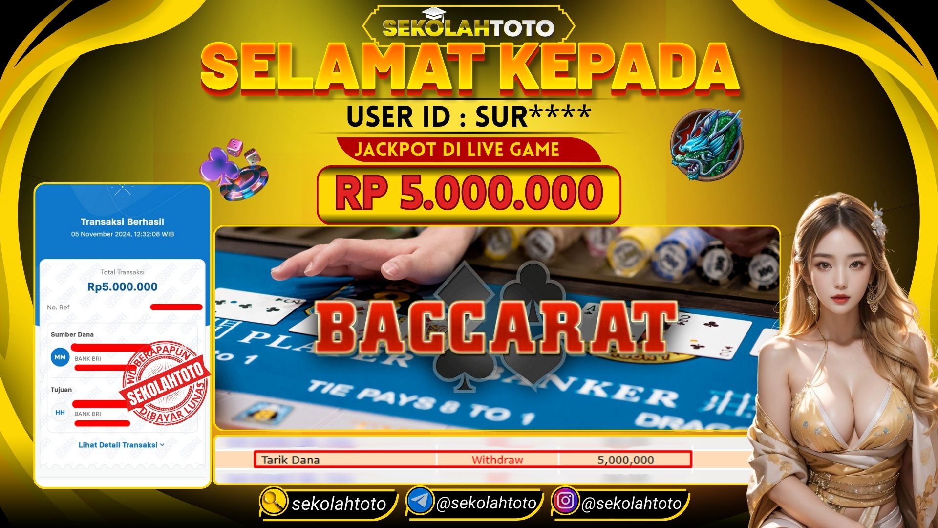 BUKTI PEMBAYARAN JACKPOT LIVE GAME 5 November 2024 Posted by kepsektoto BACCARAT 1 IDNLIVE SELASA , 05 NOVEMBER 2024 RP. 5,000,000,- Selamat Kepada Pemenang. Salam JP, Sekolahtoto ! Updated: 5 November 2024 at 13:35 ◀ BUKTI PEMBAYARAN JACKPOT LIVE GAME BUKTI PEMBAYARAN JACKPOT LIVE GAME ▶
