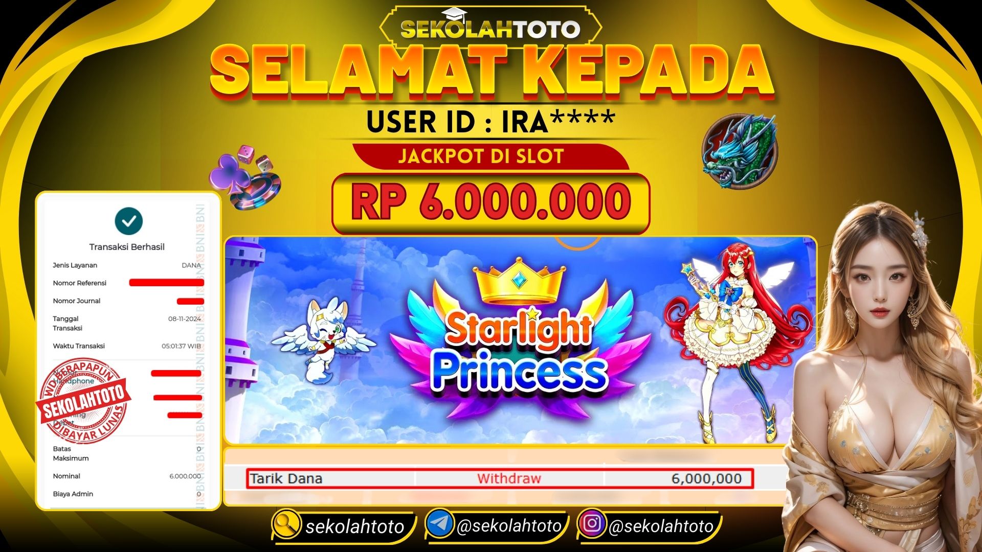 BUKTI PEMBAYARAN JACKPOT SLOT 8 November 2024 Posted by kepsektoto STARLIGHT PRINCESS JUMAT , 08 NOVEMBER 2024 RP. 6,000,000,- Selamat Kepada Pemenang. Salam JP, Sekolahtoto ! Updated: 8 November 2024 at 07:08 ◀ Prediksi Togel Toto Macau Hari Ini BUKTI PEMBAYARAN JACKPOT PGSOFT ▶