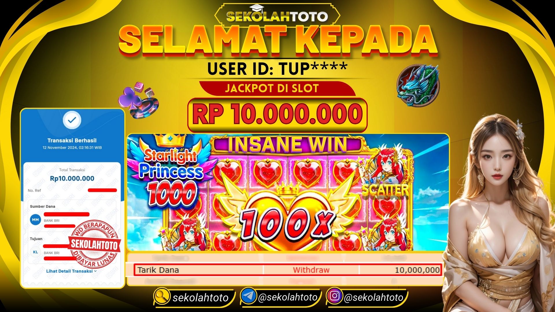 BUKTI PEMBAYARAN JACKPOT SLOT 12 November 2024 Posted by kepsektoto STARLIGHT PRINCESS SELASA , 12 NOVEMBER 2024 RP. 10,000,000,- Selamat Kepada Pemenang. Salam JP, Sekolahtoto ! Updated: 12 November 2024 at 05:48 ◀ Prediksi Togel Toto Macau Hari Ini BUKTI PEMBAYARAN JACKPOT SLOT ▶