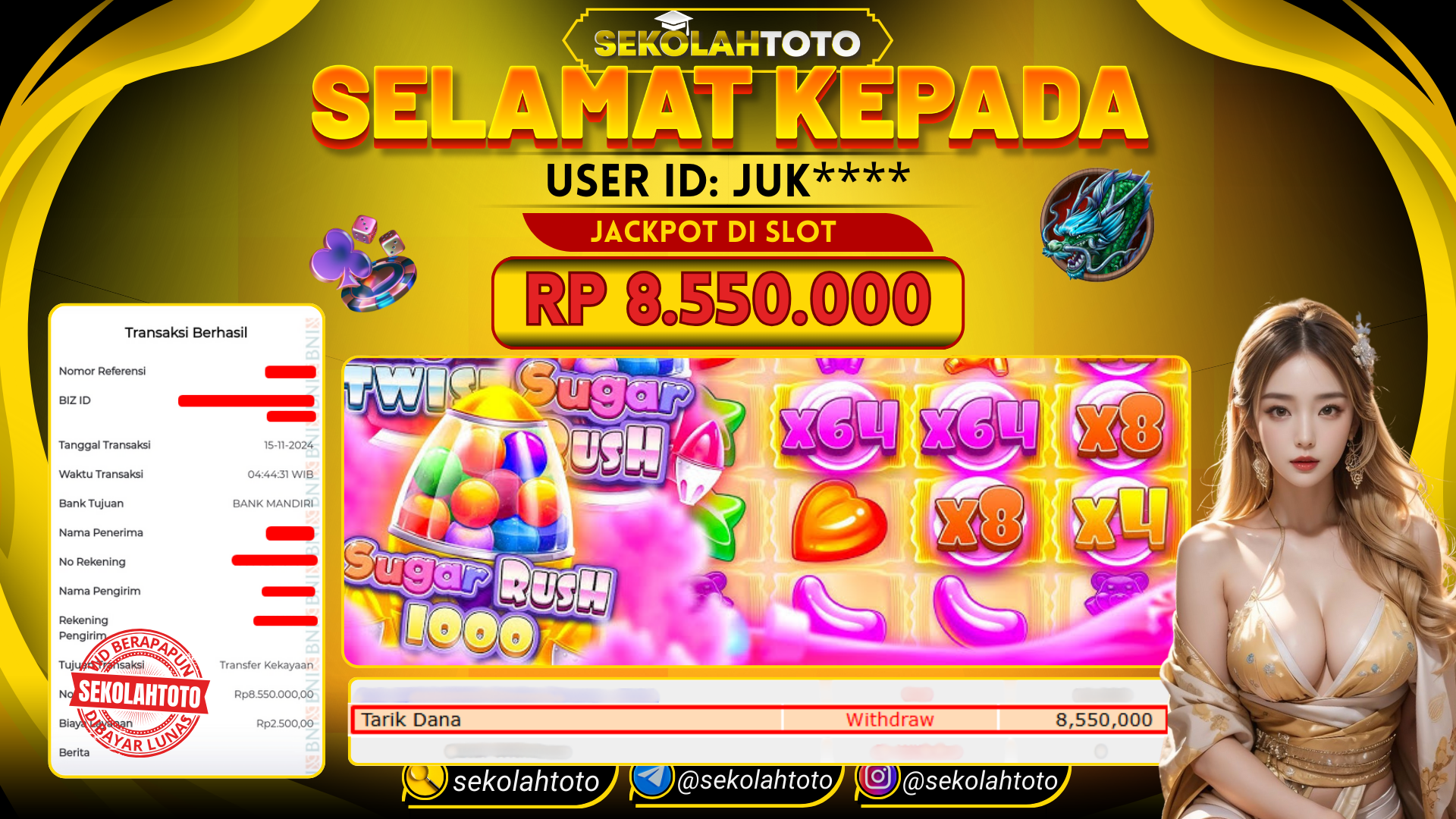 BUKTI PEMBAYARAN JACKPOT SLOT 15 November 2024 Posted by kepsektoto SUGAR RUSH 1000 JUMAT , 15 NOVEMBER 2024 RP. 8,550,000,- Selamat Kepada Pemenang. Salam JP, Sekolahtoto ! Updated: 15 November 2024 at 07:30 ◀ Prediksi Togel Toto Macau Hari Ini BUKTI PEMBAYARAN JACKPOT SLOT ▶