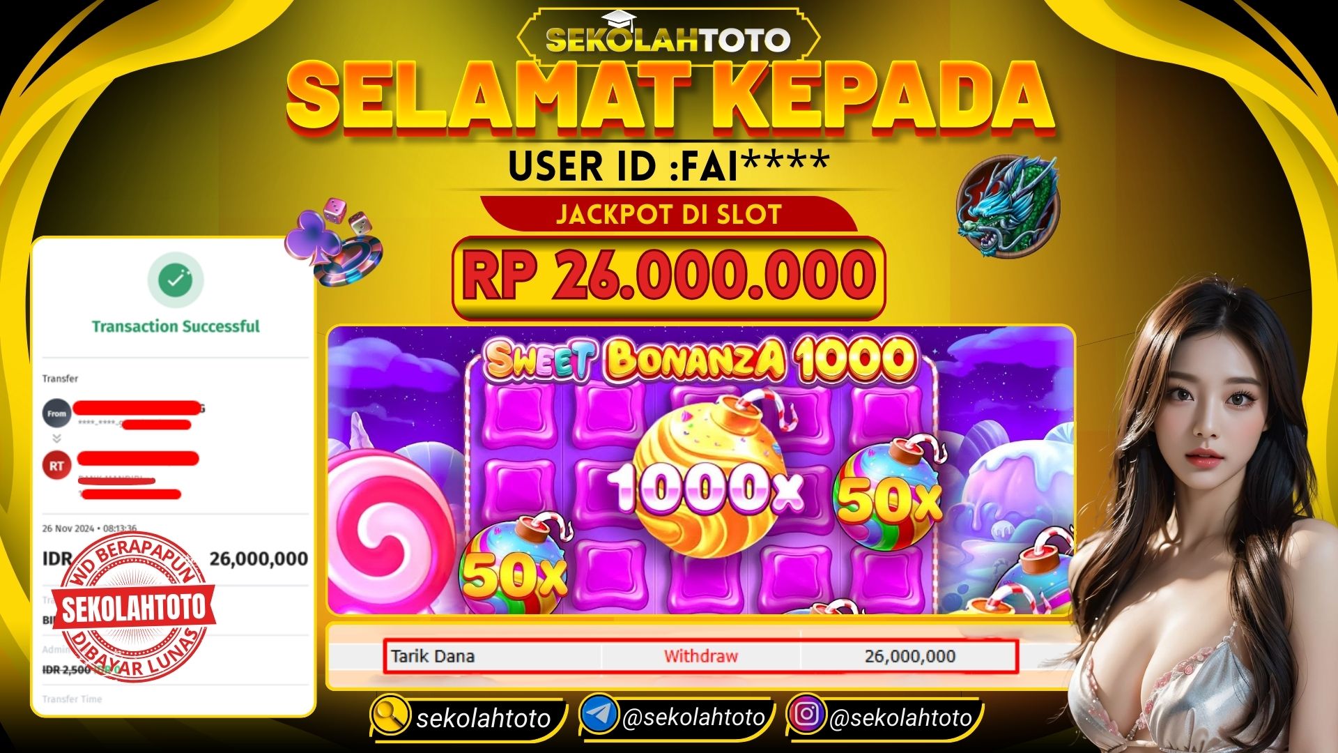 BUKTI PEMBAYARAN JACKPOT PRAGMATIC PLAY 26 November 2024 Posted by kepsektoto SWEET BONANZA 1000 SELASA , 26 NOVEMBER 2024 RP. 26,000,000,- Selamat Kepada Pemenang. Salam JP, Sekolahtoto ! Updated: 26 November 2024 at 09:57 ◀ Prediksi Togel Toto Macau Hari Ini BUKTI PEMBAYARAN JACKPOT LIVE GAME ▶