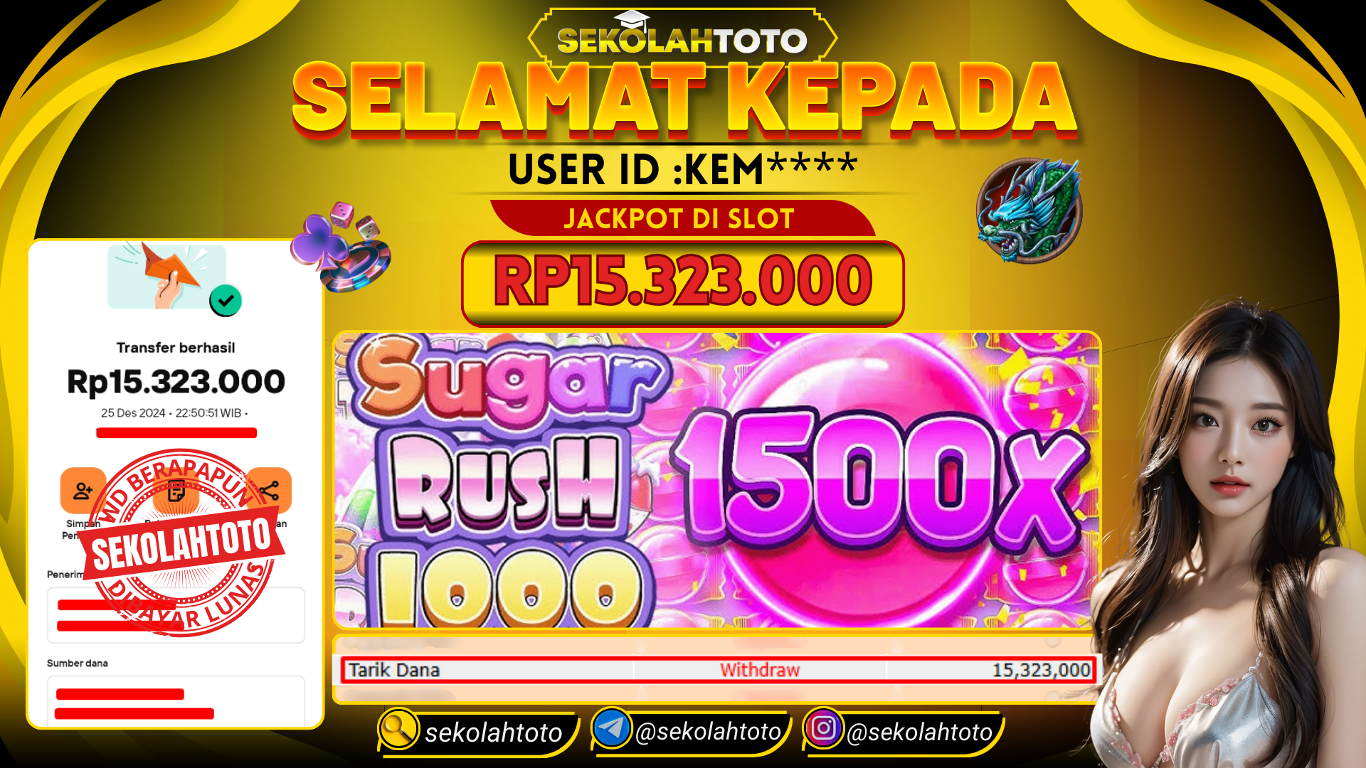 BUKTI PEMBAYARAN JACKPOT PRAGMATIC PLAY 26 Desember 2024 Posted by kepsektoto SUGAR RUSH 1000 KAMIS , 26 DESEMBER 2024 RP. 15,323,000,- Selamat Kepada Pemenang. Salam JP, Sekolahtoto ! Updated: 26 Desember 2024 at 05:40 ◀ BUKTI PEMBAYARAN JACKPOT PRAGMATIC PLAY BUKTI PEMBAYARAN JACKPOT PG SOFT ▶