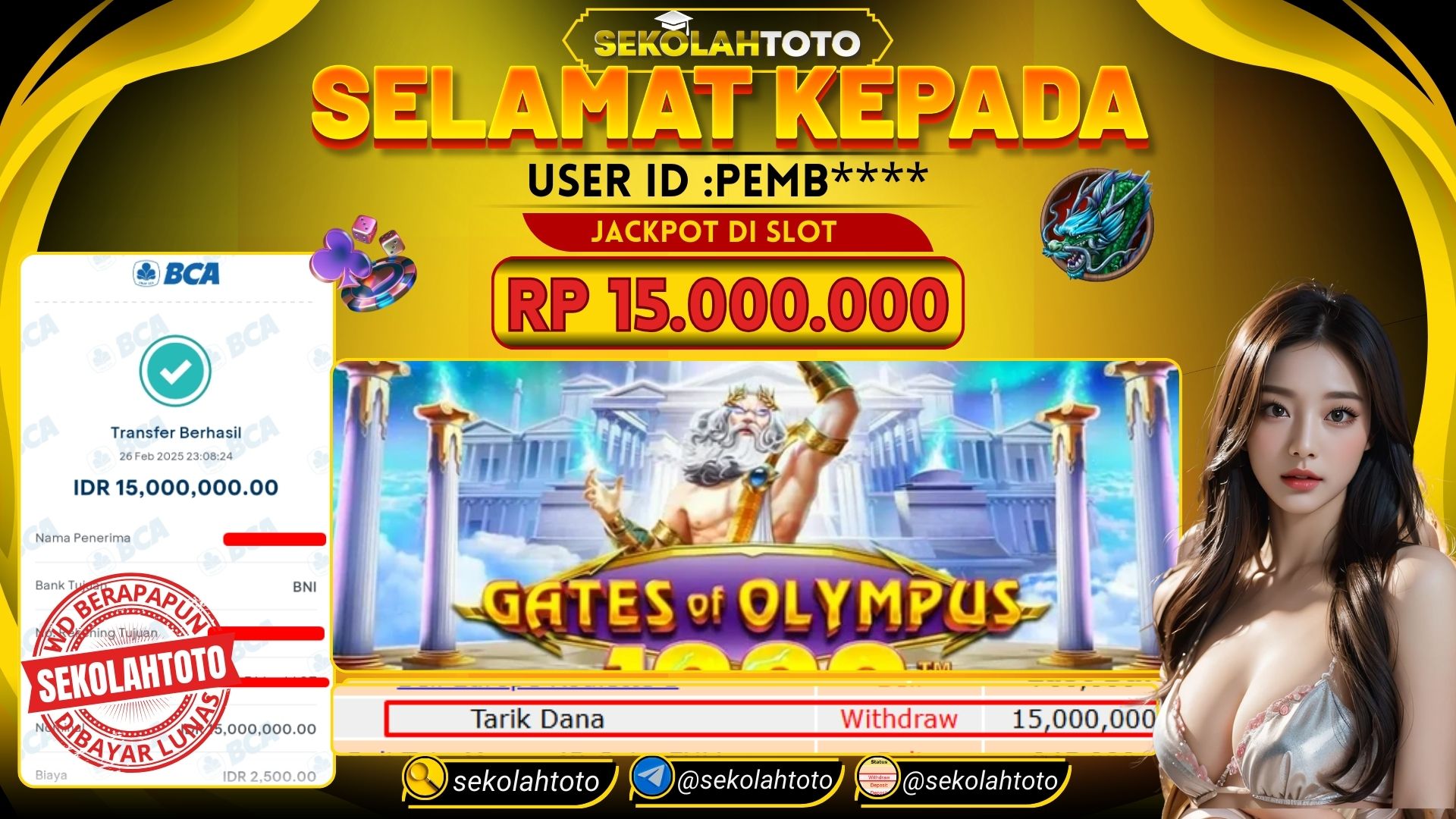 BUKTI PEMBAYARAN JACKPOT PRAGMATIC PLAY 26 Februari 2025 Posted by kepsektoto GATES OF OLYMPUS 1000 RABU , 26 FEBRUARI 2025 RP. 15,000,000,- Selamat Kepada Pemenang. Salam JP, Sekolahtoto Updated: 26 Februari 2025 at 23:20 ◀ BUKTI PEMBAYARAN JACKPOT PRAGMATIC PLAY Prediksi Togel Bullseye Pools Hari Ini ▶