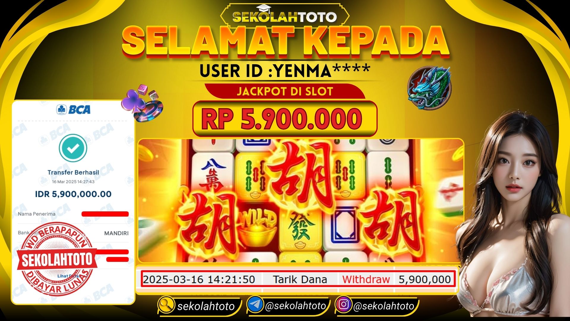 BUKTI PEMBAYARAN JACKPOT PGSOFT 16 Maret 2025 Posted by kepsektoto MAHJONG WAYS MINGGU , 16 MARET 2025 RP. 5,900,000,- Selamat Kepada Pemenang. Salam JP, Sekolahtoto Updated: 16 Maret 2025 at 15:17 ◀ BUKTI PEMBAYARAN JACKPOT TOGEL ONLINE Prediksi Togel Bullseye Pools Hari Ini ▶