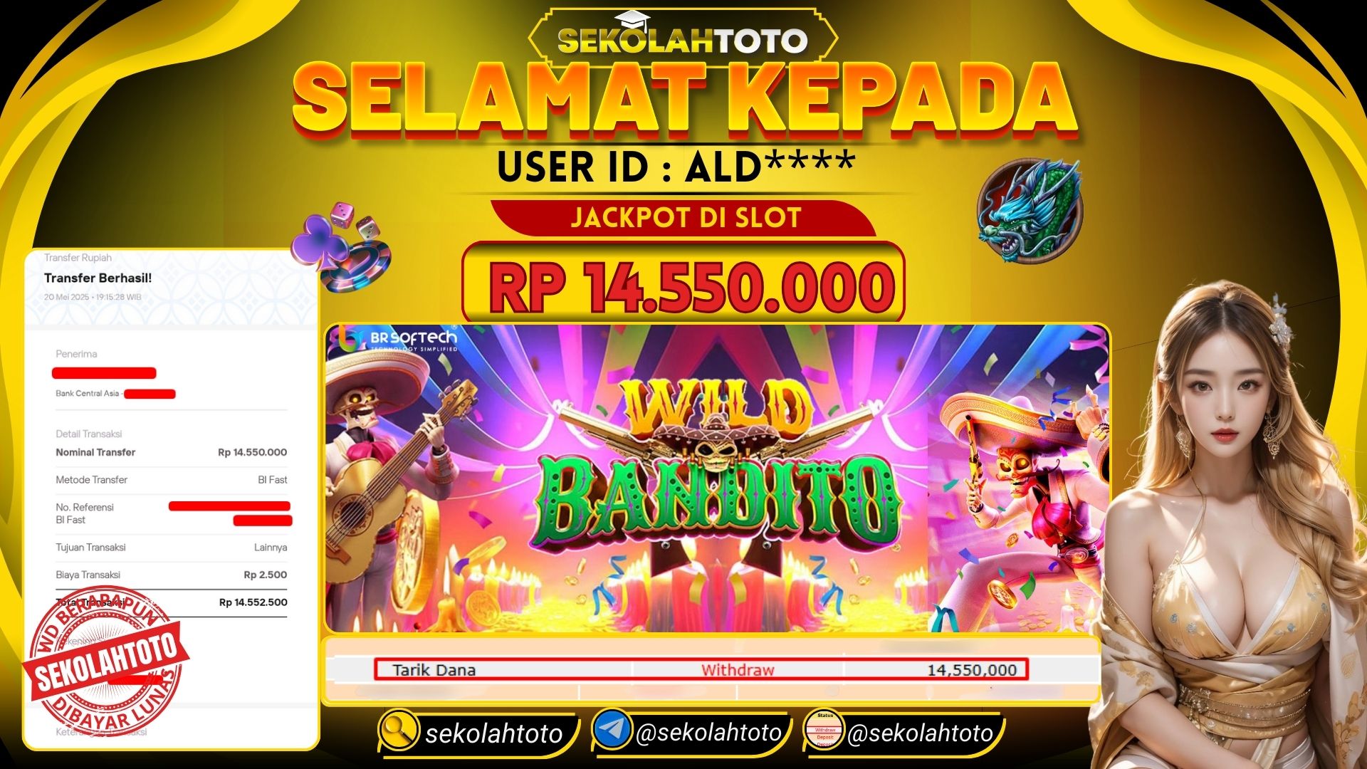 BUKTI PEMBAYARAN JACKPOT PG SOFT 20 Mei 2025 Posted by kepsektoto WILD BANDITO SELASA, 20 MEI 2025 RP.14,550,000,- Selamat Kepada Pemenang. Salam JP Updated: 20 Mei 2025 at 19:46 ◀ BUKTI PEMBAYARAN JACKPOT PG SOFT Prediksi Togel Bullseye Pools Hari Ini ▶