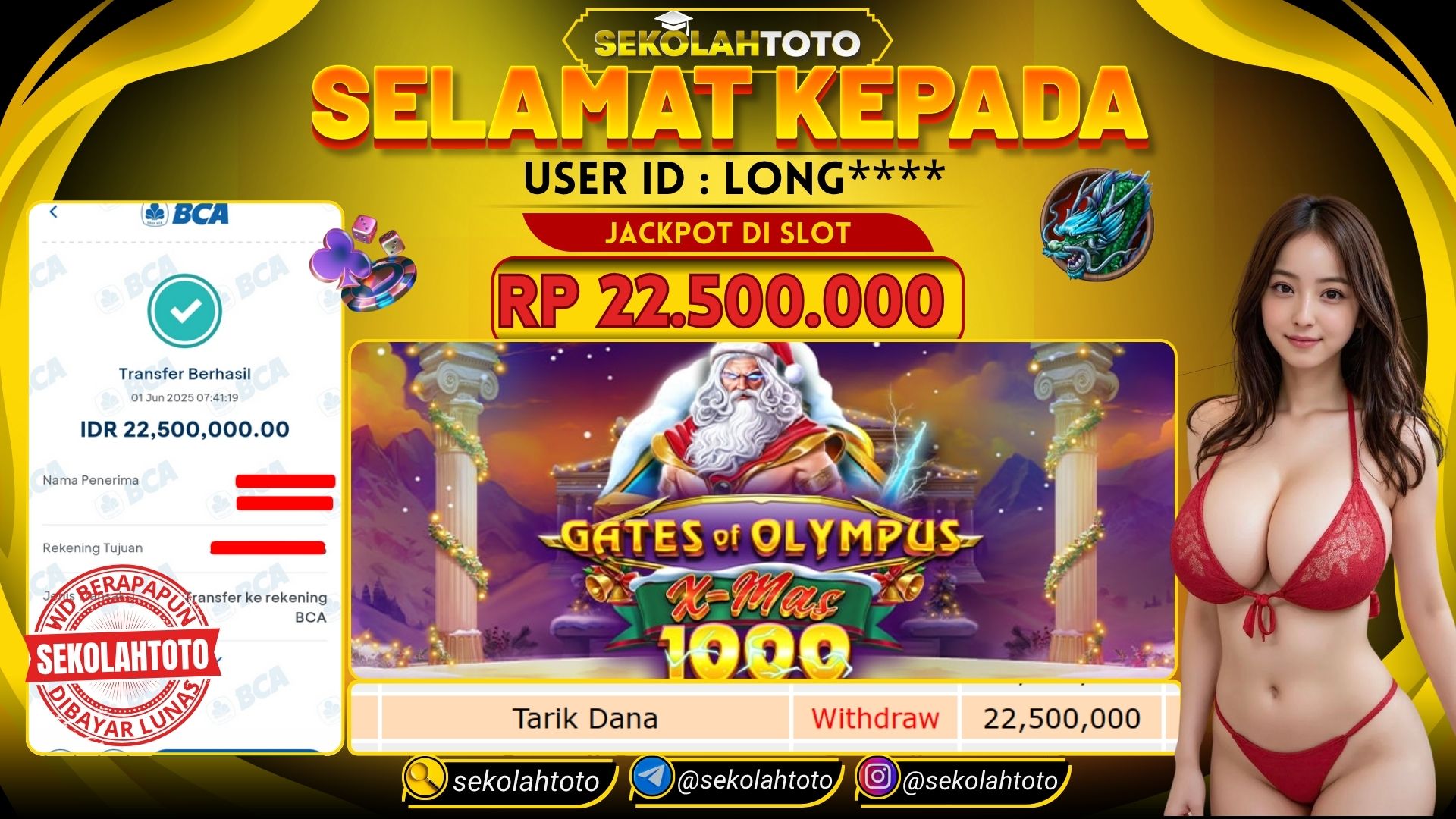 BUKTI PEMBAYARAN JACKPOT PRAGMATIC PLAY 1 Juni 2025 Posted by kepsektoto GATES OF OLYMPUS XMAX 1000 MINGGU, 1 JUNI 2025 RP 22,500,000,- Selamat Kepada Pemenang. Salam JP Updated: 1 Juni 2025 at 07:51 ◀ BUKTI PEMBAYARAN JACKPOT PRAGMATIC PLAY BUKTI PEMBAYARAN JACKPOT PG SOFT ▶