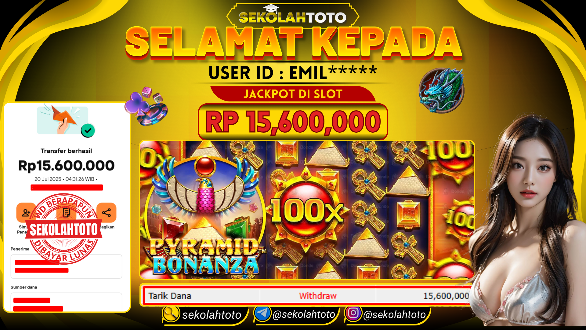 BUKTI PEMBAYARAN JACKPOT PRAGMATIC PLAY 20 Juli 2025 Posted by kepsektoto PYRAMID BONANZA MINGU , 20 JULI 2025 RP 15,600,000,- Selamat Kepada Pemenang. Salam JP Updated: 20 Juli 2025 at 08:25 ◀ Prediksi Togel Toto Macau Hari Ini BUKTI PEMBAYARAN JACKPOT PG SOFT ▶