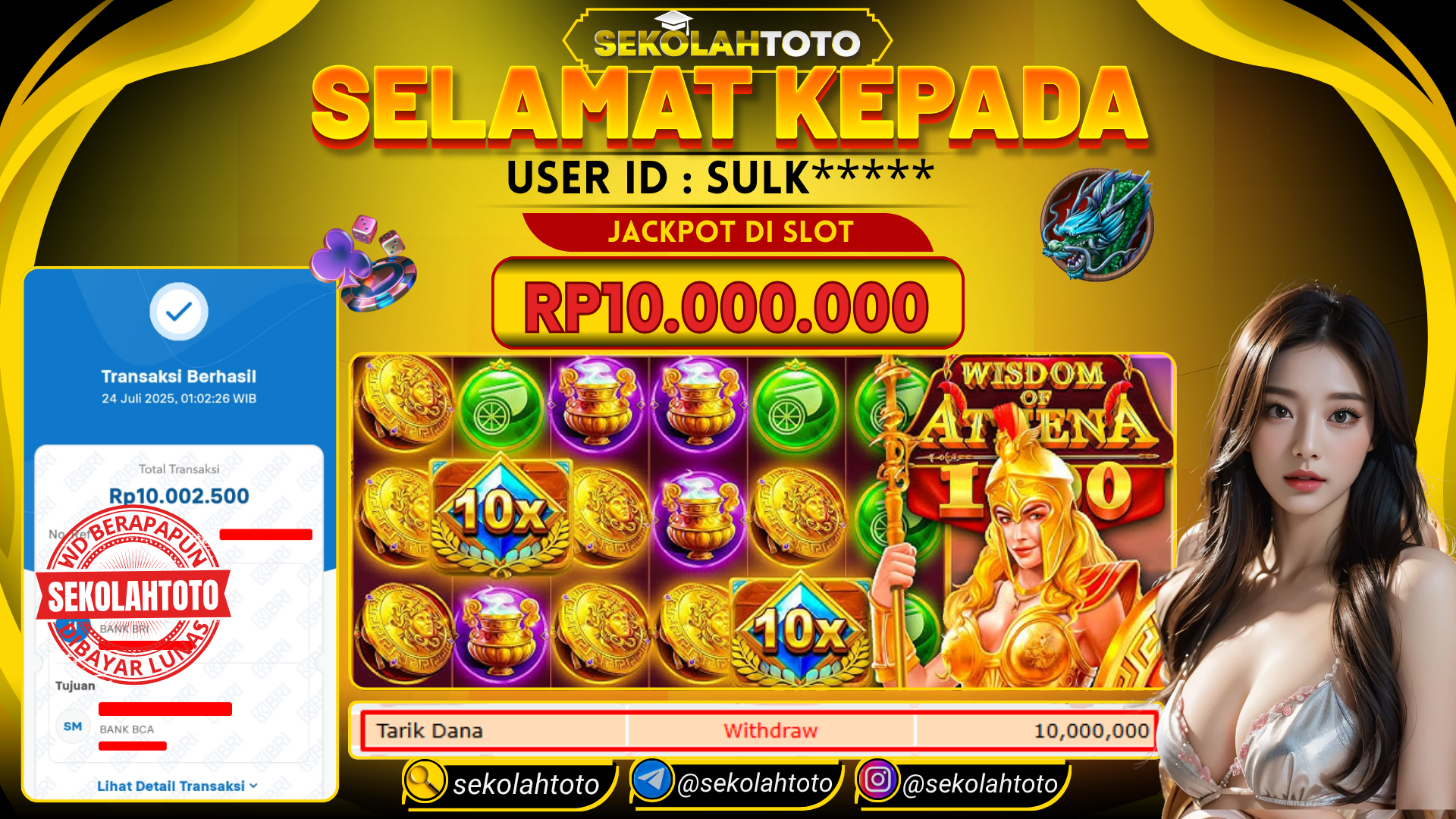 BUKTI PEMBAYARAN JACKPOT PRAGMATIC PLAY 24 Juli 2025 Posted by kepsektoto WISDOM OF ATHENA 1000 KAMIS , 24 JULI 2025 RP 10,000,000,- Selamat Kepada Pemenang. Salam JP Updated: 24 Juli 2025 at 02:53 ◀ Prediksi Togel Toto Macau Hari Ini BUKTI PEMBAYARAN JACKPOT PRAGMATIC PLAY ▶