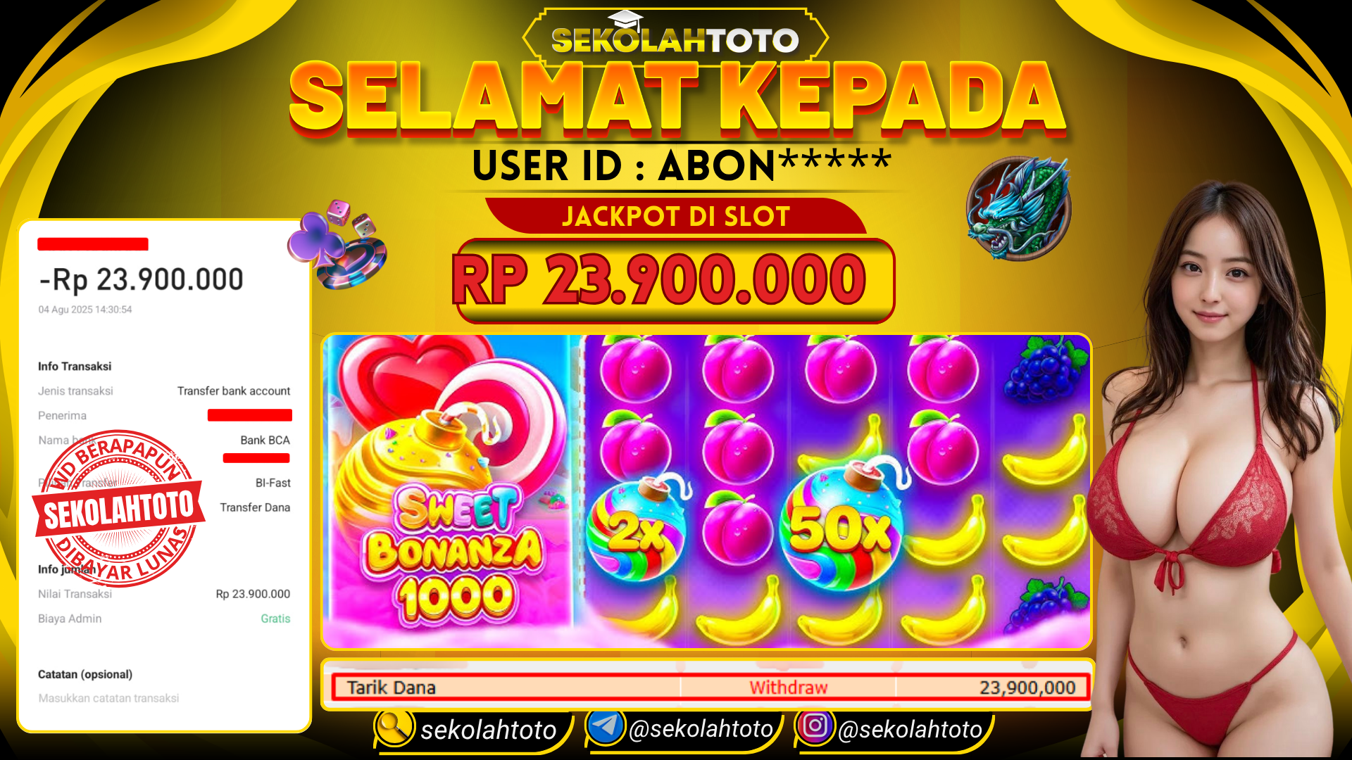 BUKTI PEMBAYARAN JACKPOT PRAGMATIC PLAY 4 Agustus 2025 Posted by kepsektoto SWEET BONANZA 1000 SENIN, 04 AGUSTUS 2025 RP 23,900,000,- Selamat Kepada Pemenang. Salam JP Updated: 4 Agustus 2025 at 19:19 ◀ BUKTI PEMBAYARAN JACKPOT PG SOFT BUKTI PEMBAYARAN JACKPOT PRAGMATIC PLAY ▶
