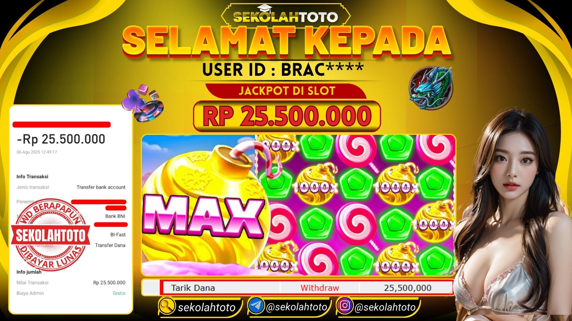 BUKTI PEMBAYARAN JACKPOT PRAGMATIC PLAY5 6 Agustus 2025 Posted by kepsektoto SWEET BONANZA X1000 RABU , 06 AGUSTUS 2025 RP 25,500,000,- Selamat Kepada Pemenang. Salam JP Updated: 6 Agustus 2025 at 15:47 ◀ BUKTI PEMBAYARAN JACKPOT TOGEL BUKTI PEMBAYARAN JACKPOT PG SOFT ▶