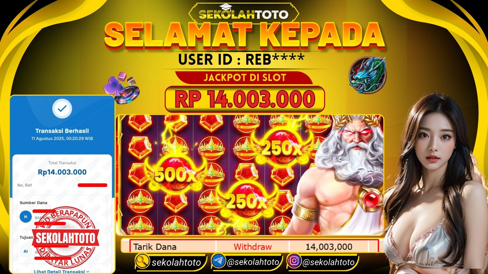 BUKTI PEMBAYARAN JACKPOT PRAGMATIC PLAY 11 Agustus 2025 Posted by kepsektoto OLYMPUSS GATE 1000 MINGGU , 11 AGUSTUS 2025 RP 14,003,000,- Selamat Kepada Pemenang. Salam JP Updated: 11 Agustus 2025 at 09:48 ◀ Prediksi Togel Toto Macau Hari Ini BUKTI PEMBAYARAN JACKPOT PG SOFT ▶