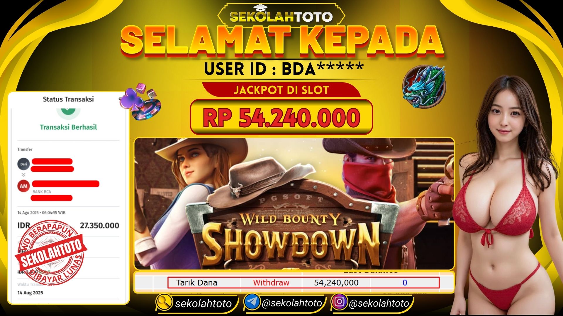 BUKTI PEMBAYARAN JACKPOT PG SOFT 14 Agustus 2025 Posted by kepsektoto WILD BOUNTY SHOWDOWN KAMIS, 14 AGUSTUS 2025 RP 54,240,000,- Selamat Kepada Pemenang. Salam JP Updated: 14 Agustus 2025 at 06:30 ◀ Prediksi Togel Toto Macau Hari Ini BUKTI PEMBAYARAN JACKPOT PG SOFT ▶