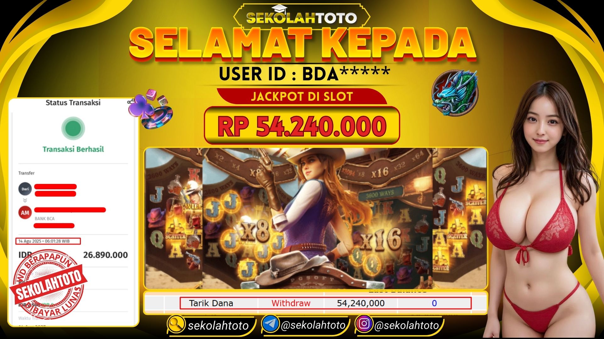 BUKTI PEMBAYARAN JACKPOT PG SOFT 14 Agustus 2025 Posted by kepsektoto WILD BOUNTY SHOWDOWN KAMIS, 14 AGUSTUS 2025 RP 54,240,000,- Selamat Kepada Pemenang. Salam JP Updated: 14 Agustus 2025 at 06:32 ◀ BUKTI PEMBAYARAN JACKPOT PG SOFT BUKTI PEMBAYARAN JACKPOT PRAGMATIC PLAY ▶