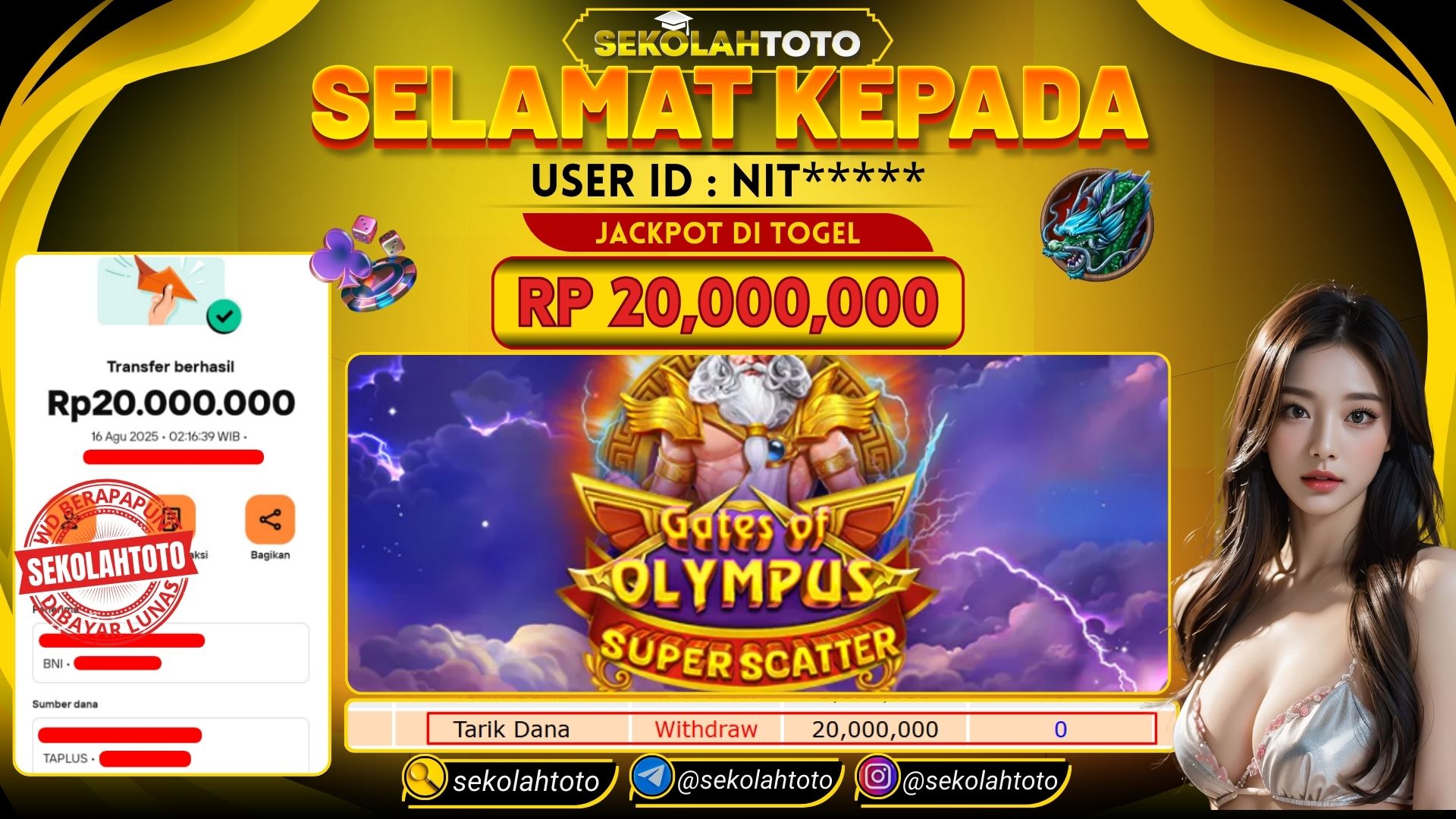 BUKTI PEMBAYARAN JACKPOT PRAGMATIC PLAY 16 Agustus 2025 Posted by kepsektoto GATES OF OLYMPUS SUPER SCATTER SABTU, 16 AGUSTUS 2025 RP 20,000,000,- Selamat Kepada Pemenang. Salam JP Updated: 16 Agustus 2025 at 03:31 ◀ BUKTI PEMBAYARAN JACKPOT LIVE GAMES BUKTI PEMBAYARAN PG SOFT ▶