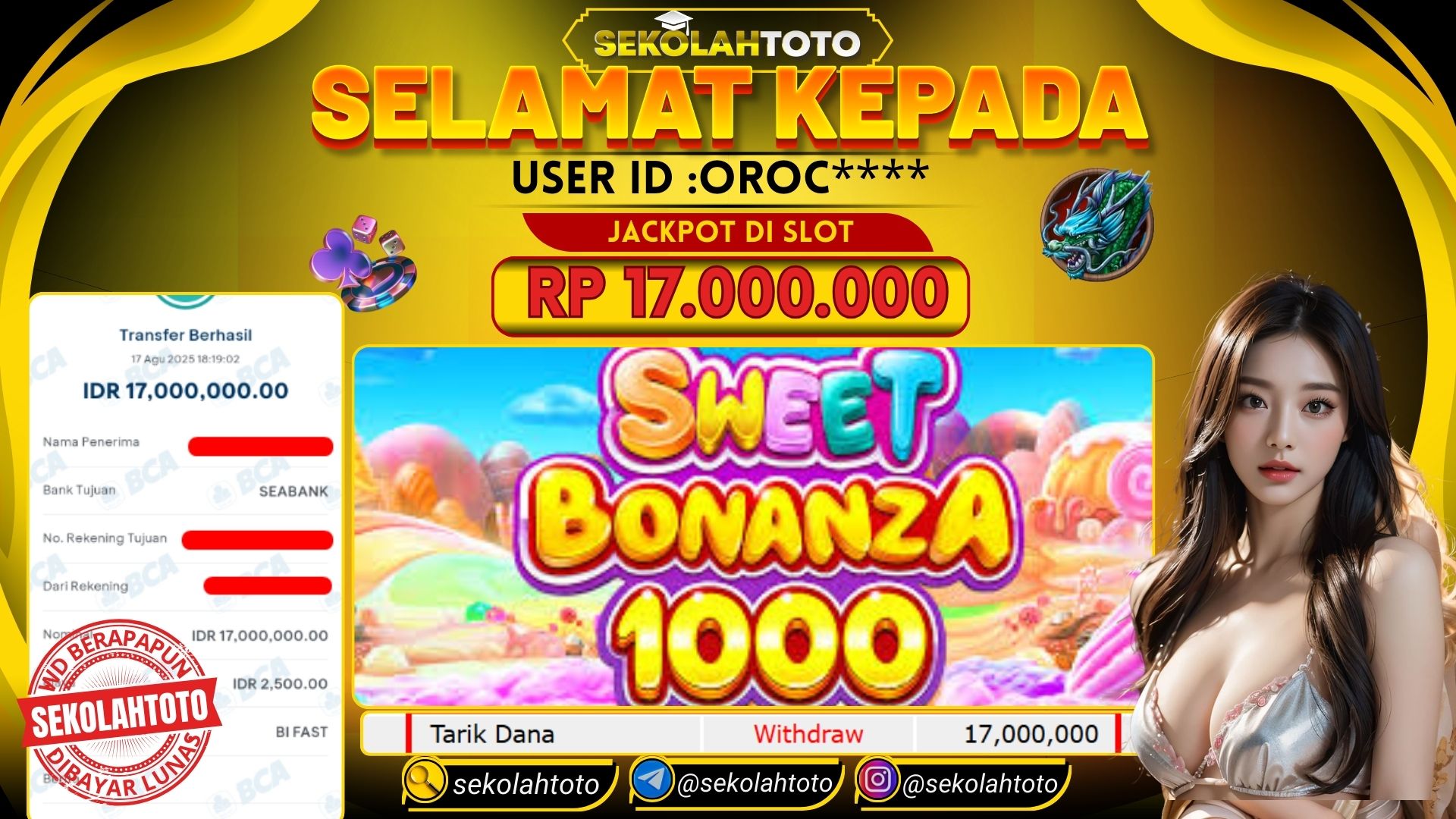BUKTI PEMBAYARAN JACKPOT PRAGMATIC PLAY 17 Agustus 2025 Posted by kepsektoto SWEET BONANZA 1000 MINGGU, 17 AGUSTUS 2025 RP 17,000,000,- Selamat Kepada Pemenang. Salam JP Updated: 17 Agustus 2025 at 19:39 ◀ BUKTI PEMBAYARAN JACKPOT PRAGMATIC PLAY Prediksi Togel Bullseye Pools Hari Ini ▶