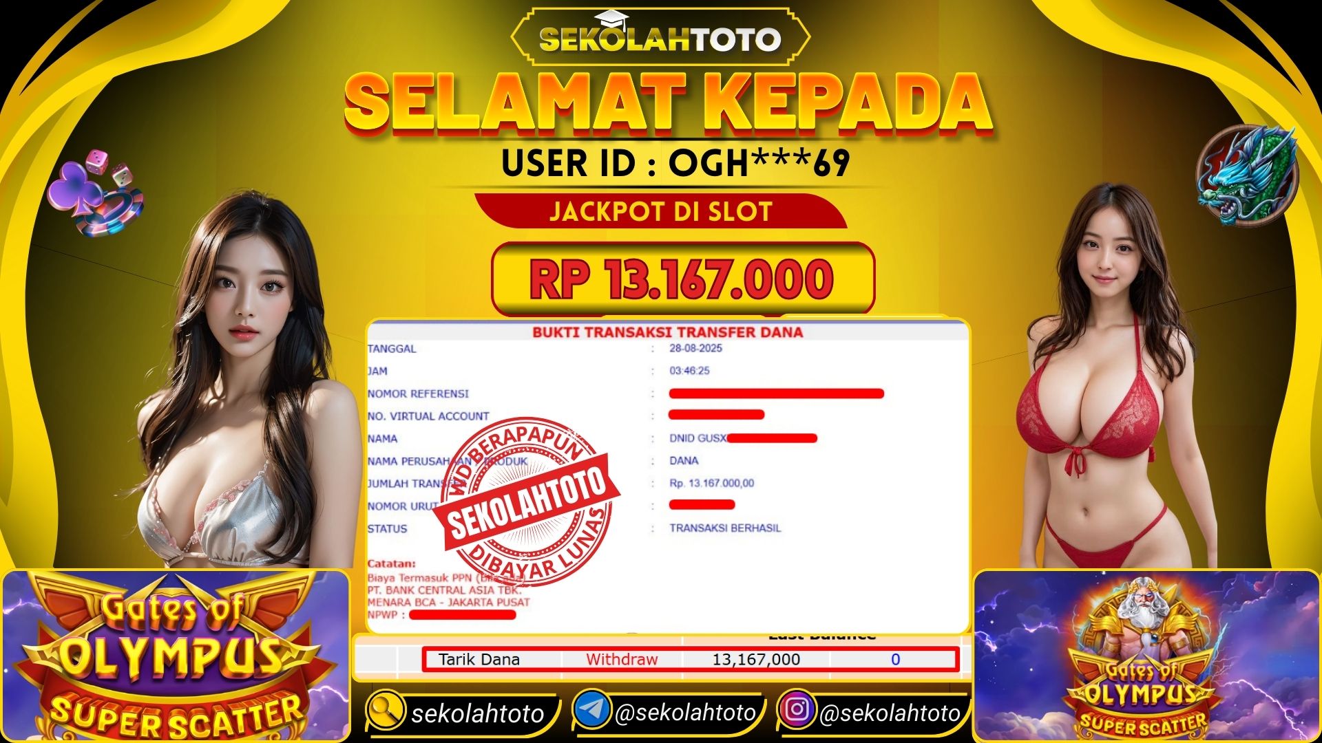 BUKTI PEMBAYARAN JACKPOT PRAGMATIC PLAY 28 Agustus 2025 Posted by kepsektoto GATES OF OLYMPUS SUPER SCATTER KAMIS , 28 AGUSTUS 2025 RP 13,167,000,- Selamat Kepada Pemenang. Salam JP Updated: 28 Agustus 2025 at 10:35 ◀ Prediksi Togel Toto Macau Hari Ini BUKTI PEMBAYARAN JACKPOT PRAGMATIC PLAY ▶