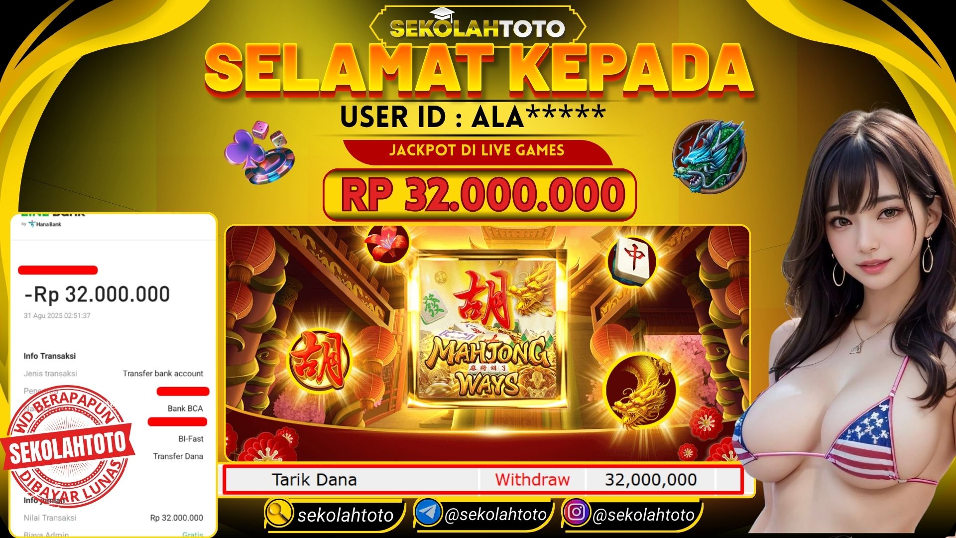 BUKTI PEMBAYARAN JACKPOT PG SOFT 31 Agustus 2025 Posted by kepsektoto MAHJONG WAYS MINGGU, 31 AGUSTUS 2025 RP 32,000,000,- Selamat Kepada Pemenang. Salam JP Updated: 31 Agustus 2025 at 06:54 ◀ BUKTI PEMBAYARAN JACKPOT PRACMATIC PLAY BUKTI PEMBAYARAN JACKPOT PG SOFT ▶