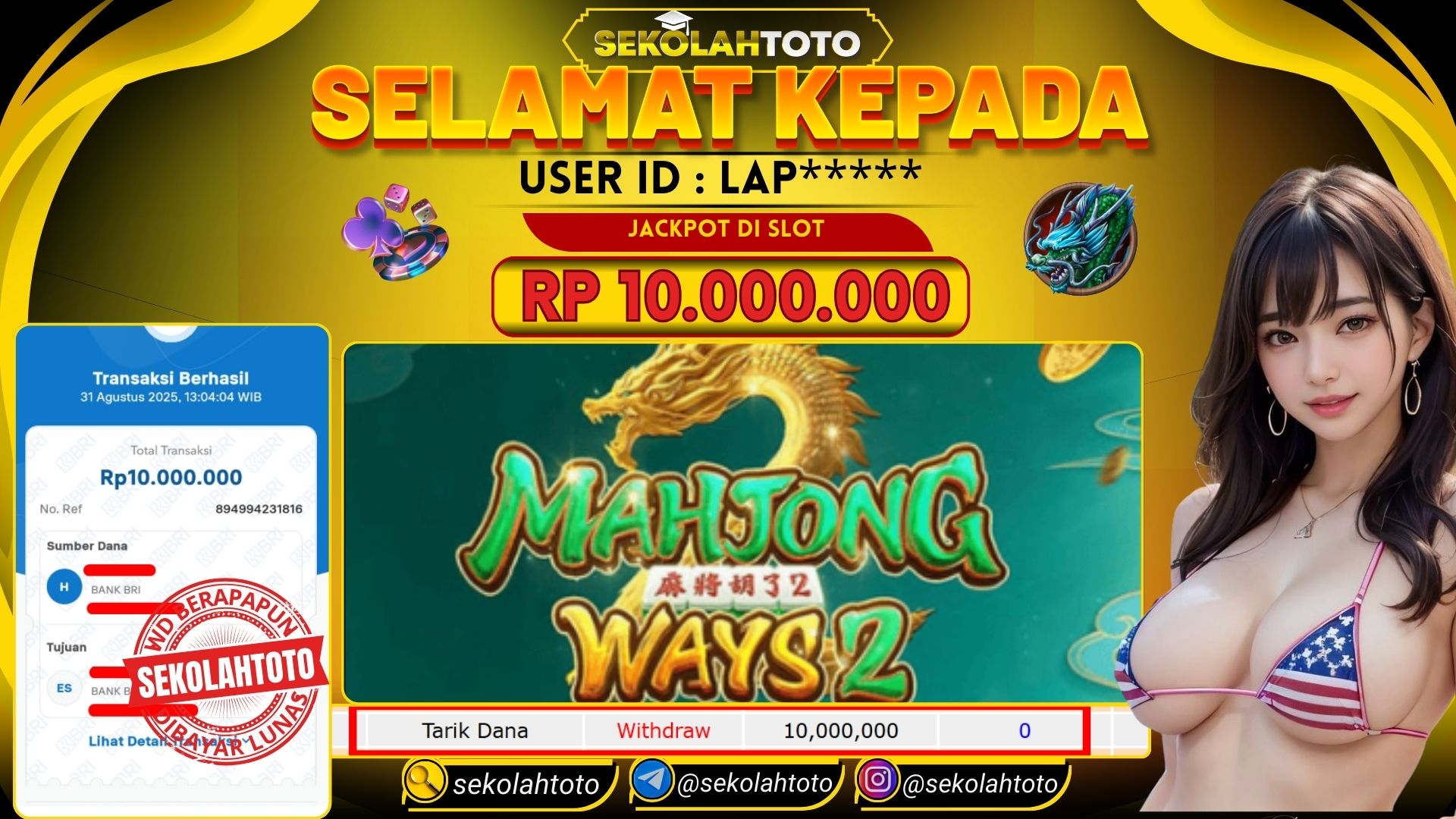 BUKTI PEMBAYARAN JACKPOT PG SOFT 31 Agustus 2025 Posted by kepsektoto MAHJONG WAYS 2 MINGGU , 31 AGUSTUS 2025 RP 10,000,000,- Selamat Kepada Pemenang Salam JP Updated: 31 Agustus 2025 at 13:31 ◀ BUKTI PEMBAYARAN JACKPOT PG SOFT Prediksi Togel Bullseye Pools Hari Ini ▶