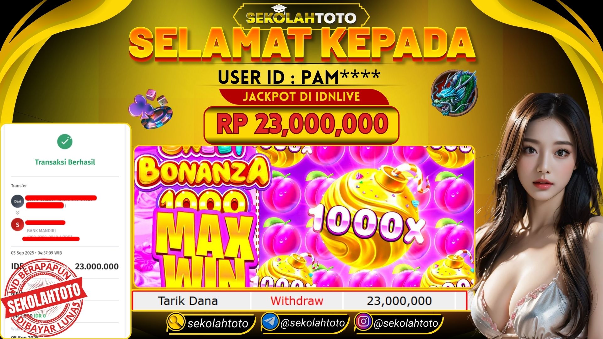 BUKTI PEMBAYARAN JACKPOT PG SOFT 5 September 2025 Posted by kepsektoto SWEET BONANZA 1000 JUMAT , 5 SEPTEMBER 2025 RP 21,000,000,- Selamat Kepada Pemenang. Salam JP Updated: 5 September 2025 at 07:59 ◀ Prediksi Togel Toto Macau Hari Ini BUKTI PEMBAYARAN JACKPOT PG SOFT ▶