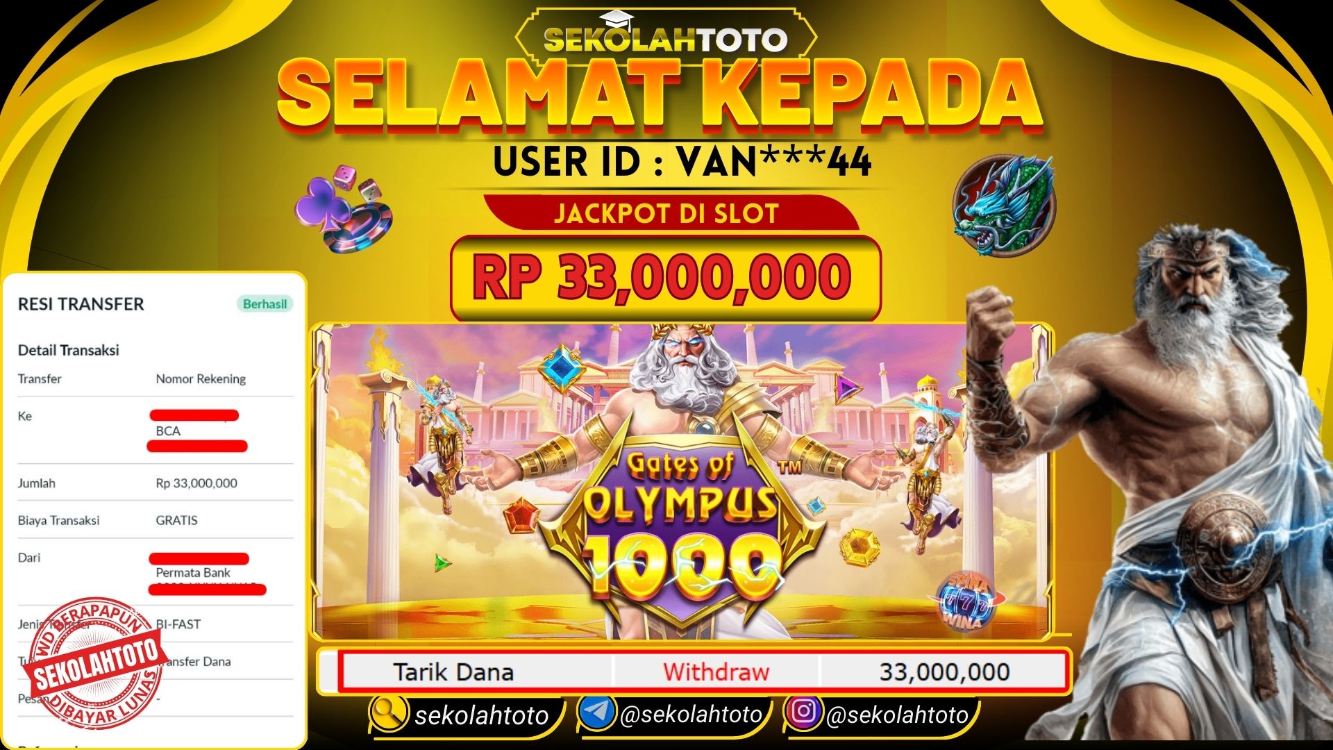 BUKTI PEMBAYARAN JACKPOT PRAGMATIC PLAY 28 September 2025 Posted by kepsektoto GATES OF OLYMPUYS 1000 MINGGU , 28 SEPTEMBER 2025 RP 33,000,000,- Selamat Kepada Pemenang. Salam JP Updated: 28 September 2025 at 13:31 ◀ BUKTI PEMBAYARAN JACKPOT PGSOFT Prediksi Togel Bullseye Pools Hari Ini ▶