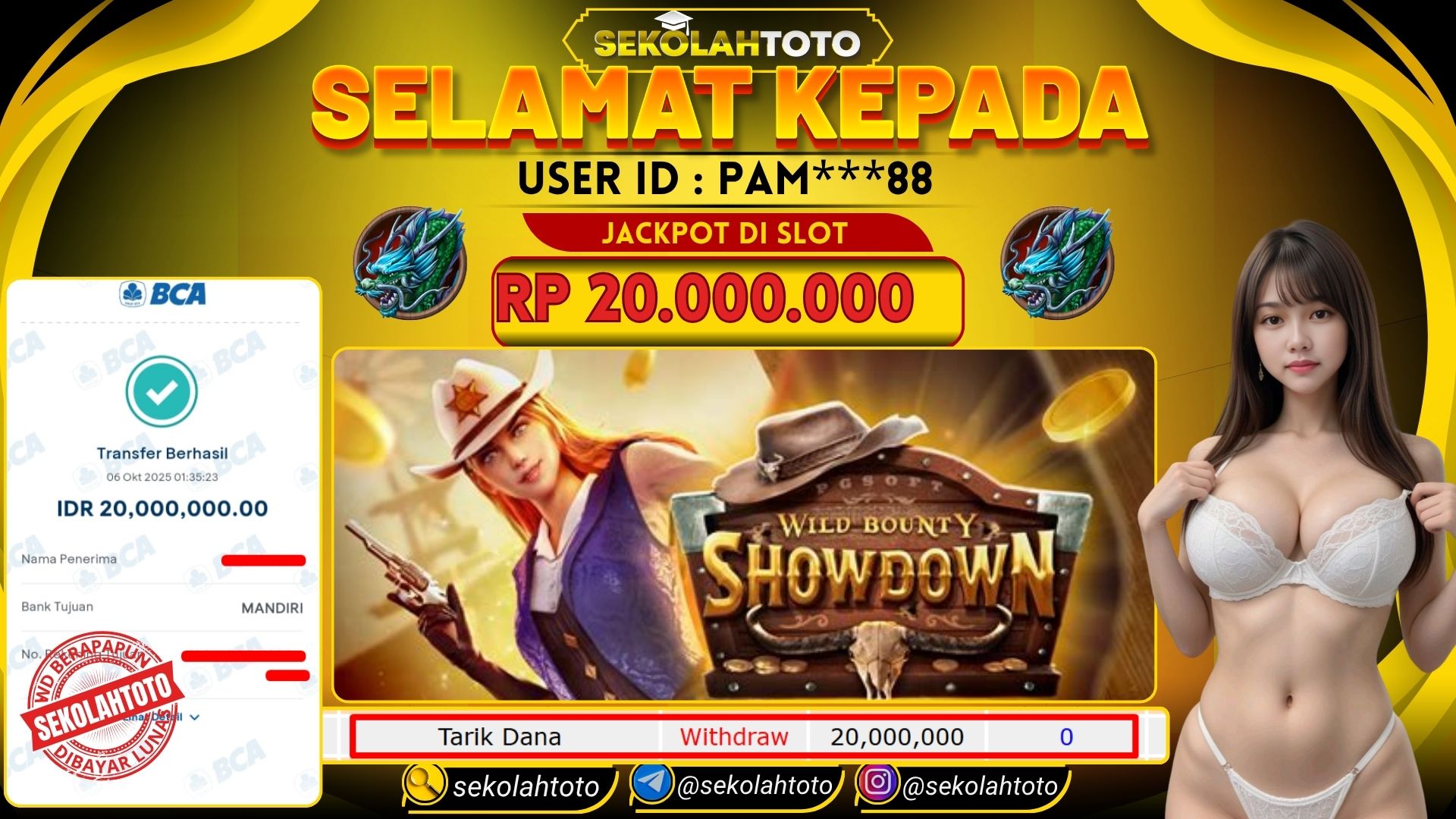 BUKTI PEMBAYARAN JACKPOT PG SOFT 6 Oktober 2025 Posted by kepsektoto WILD BOUNTY SHOWDOWN SENIN , 6 OKTOBER 2025 RP 20,000,000,- Selamat Kepada Pemenang. Salam JP Updated: 6 Oktober 2025 at 06:41 ◀ Prediksi Togel Toto Macau Hari Ini BUKTI PEMBAYARAN JACKPOT PG SOFT ▶