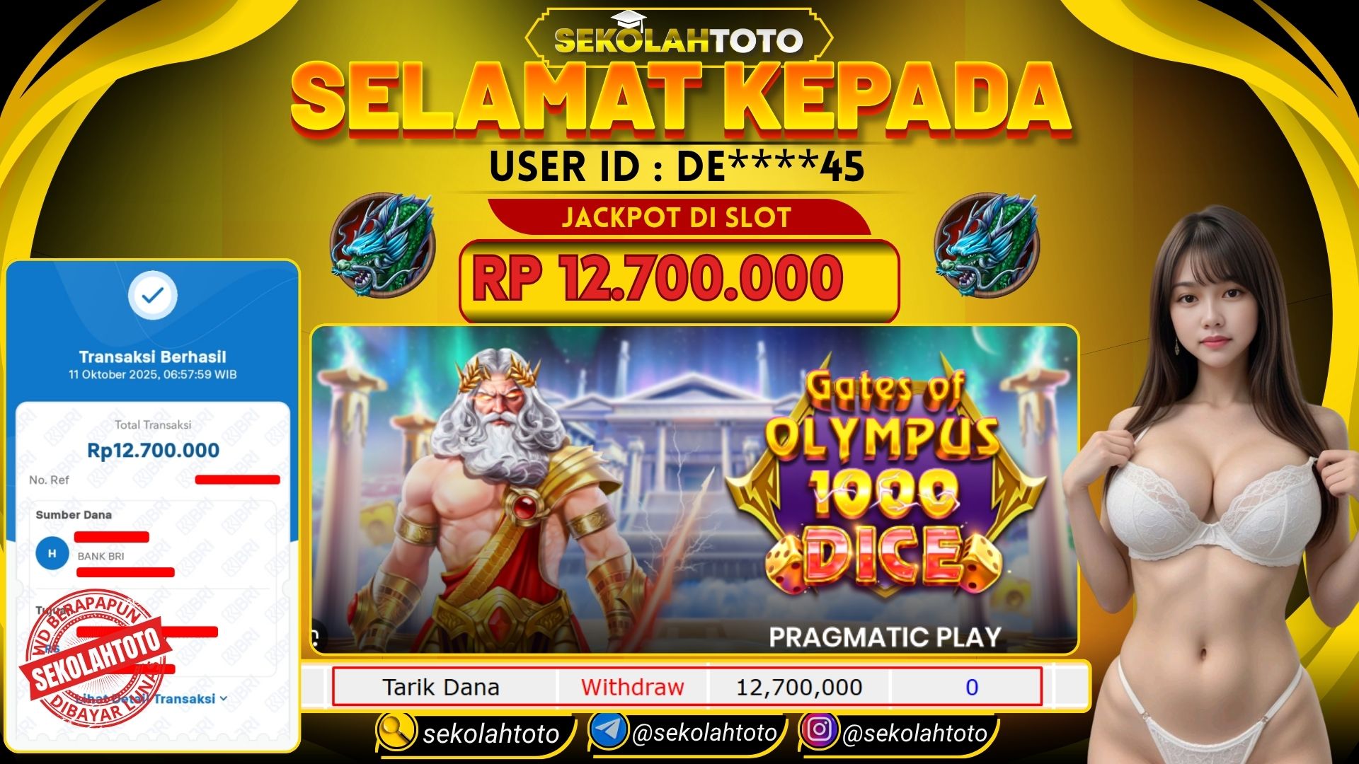 BUKTI PEMBAYARAN JACKPOT PRAGMATIC PLAY 11 Oktober 2025 Posted by kepsektoto GATES OF OLYMPUS DICE SABTU , 11 OKTOBER 2025 RP 12,700,000,- Selamat Kepada Pemenang. Salam JP Updated: 11 Oktober 2025 at 07:24 ◀ Prediksi Togel Toto Macau Hari Ini BUKTI PEMBAYARAN JACKPOT PRAGMATIC LIVE DEALER ▶