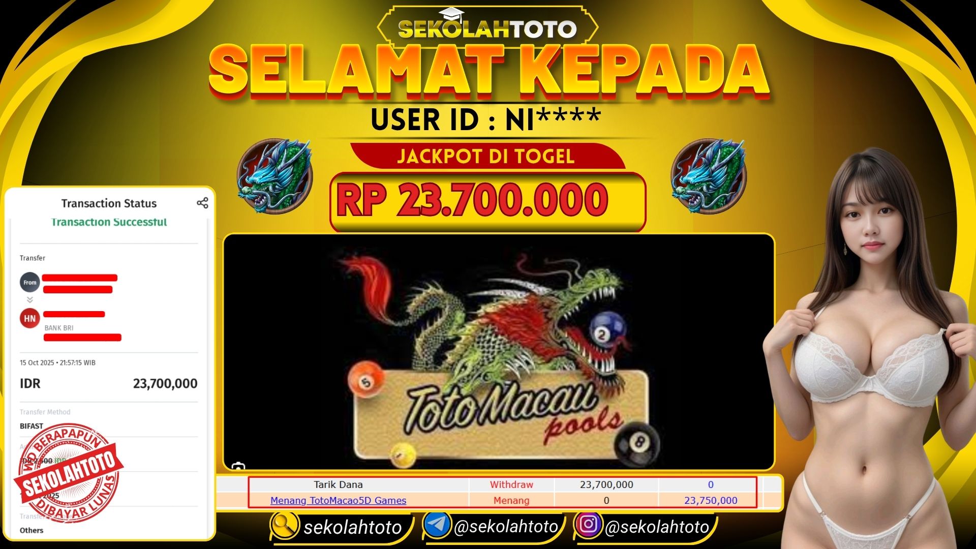 BUKTI PEMBAYARAN JACKPOT TOGEL 15 Oktober 2025 Posted by kepsektoto TOTO MACAU 5D RABU , 15 OKTOBER 2025 RP 23,700,000,- Selamat Kepada Pemenang. Salam JP Updated: 15 Oktober 2025 at 22:27 ◀ BUKTI PEMBAYARAN JACKPOT PG SOFT Prediksi Togel Bullseye Pools Hari Ini ▶