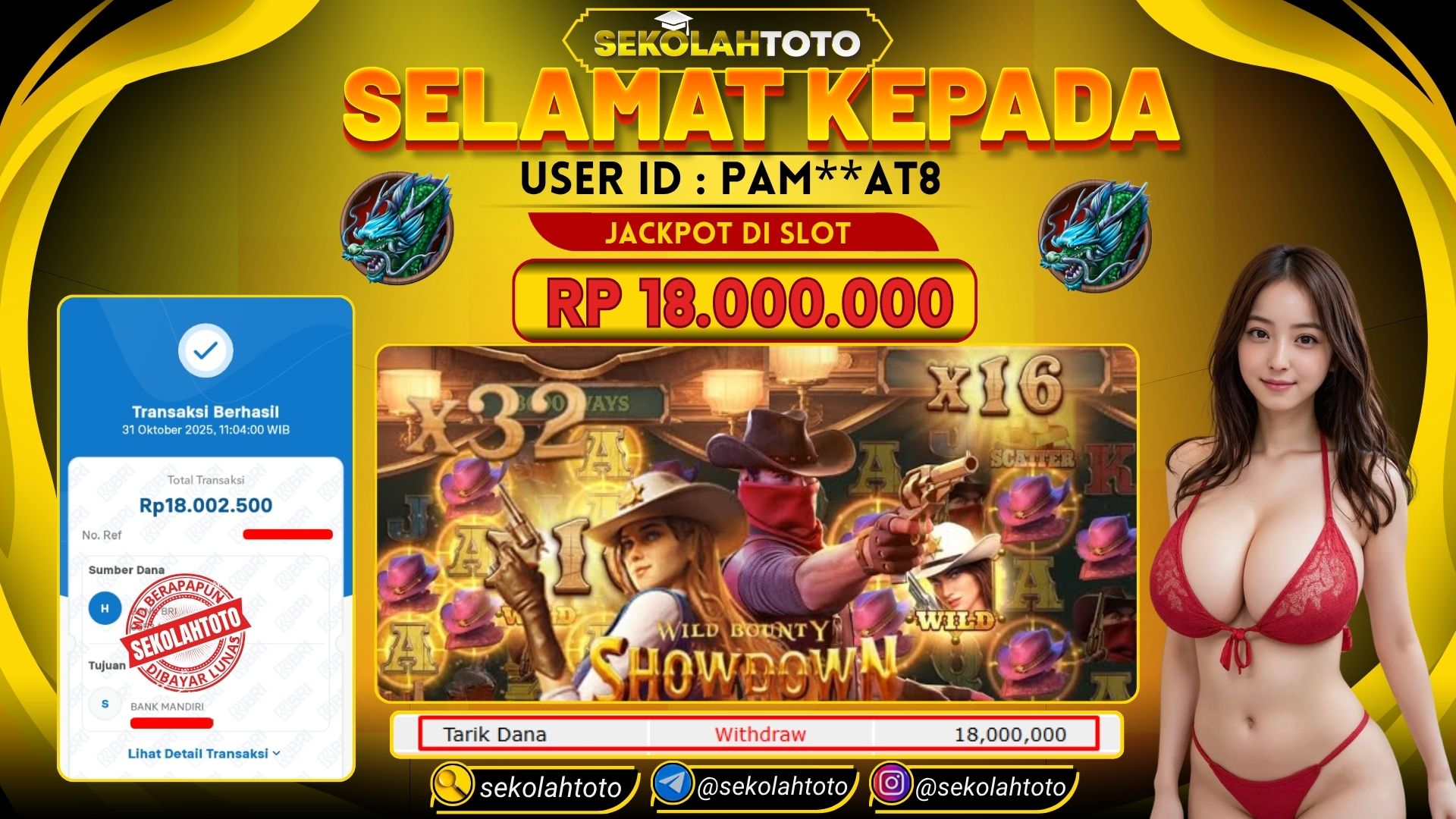BUKTI PEMBAYARAN JACKPOT PG SOFT 31 Oktober 2025 Posted by kepsektoto WILD BOUNTY SHOWDOWN JUMAT, 31 OKTOBER 2025 RP 18,000,000,- Selamat Kepada Pemenang. Salam JP Updated: 31 Oktober 2025 at 12:13 ◀ Prediksi Togel Toto Macau Hari Ini BUKTI PEMBAYARAN JACKPOT TOGEL ▶