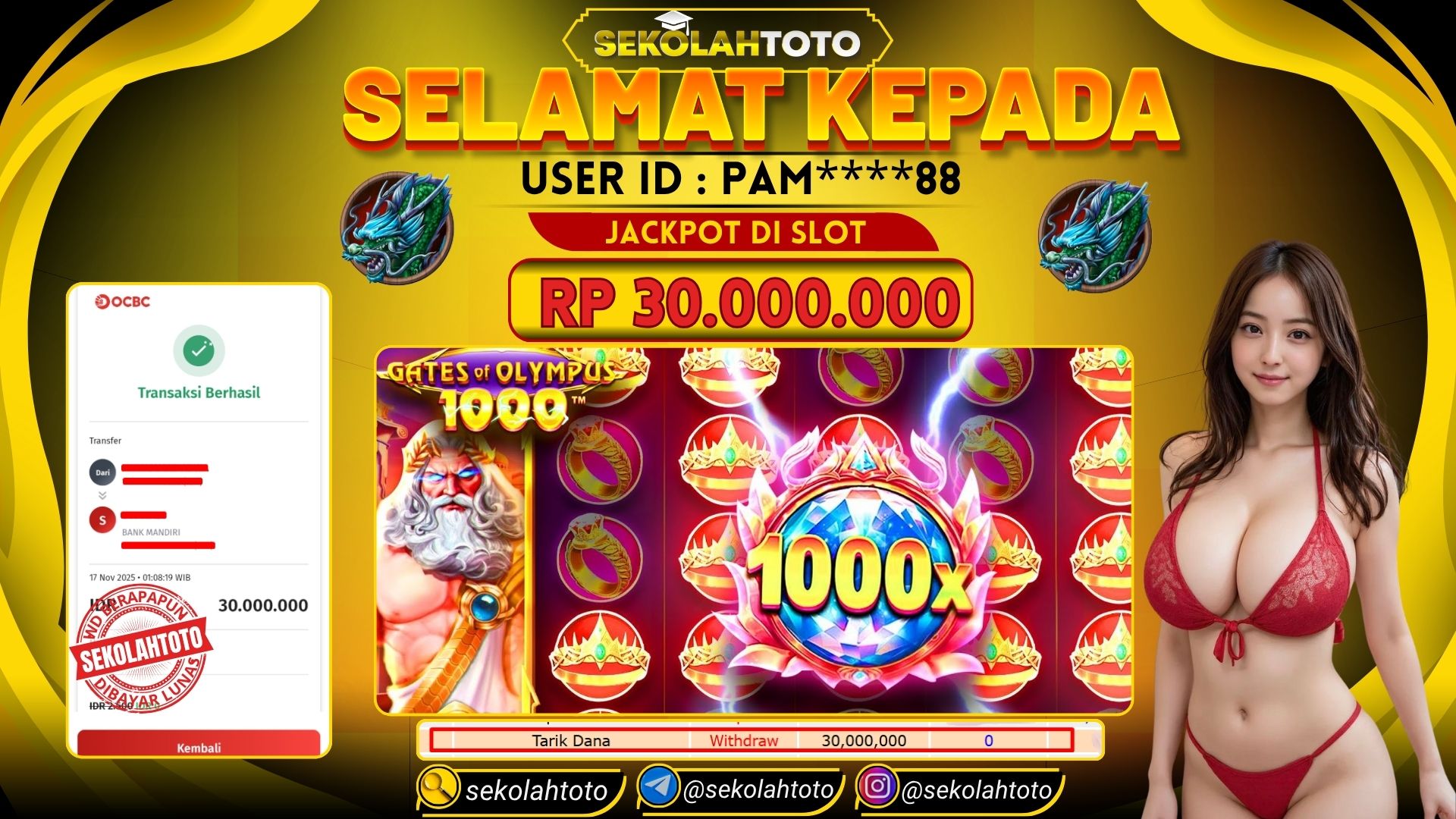 BUKTI PEMBAYARAN JACKPOT PRAGMATIC PLAY 17 November 2025 Posted by kepsektoto GATES OF OLYMPUS 1000 SENIN , 17 NOVEMBER 2025 RP 30,000,000,- Selamat Kepada Pemenang. Salam JP Updated: 17 November 2025 at 07:11 ◀ Prediksi Togel Toto Macau Hari Ini BUKTI PEMBAYARAN JACKPOT PG SOFT ▶