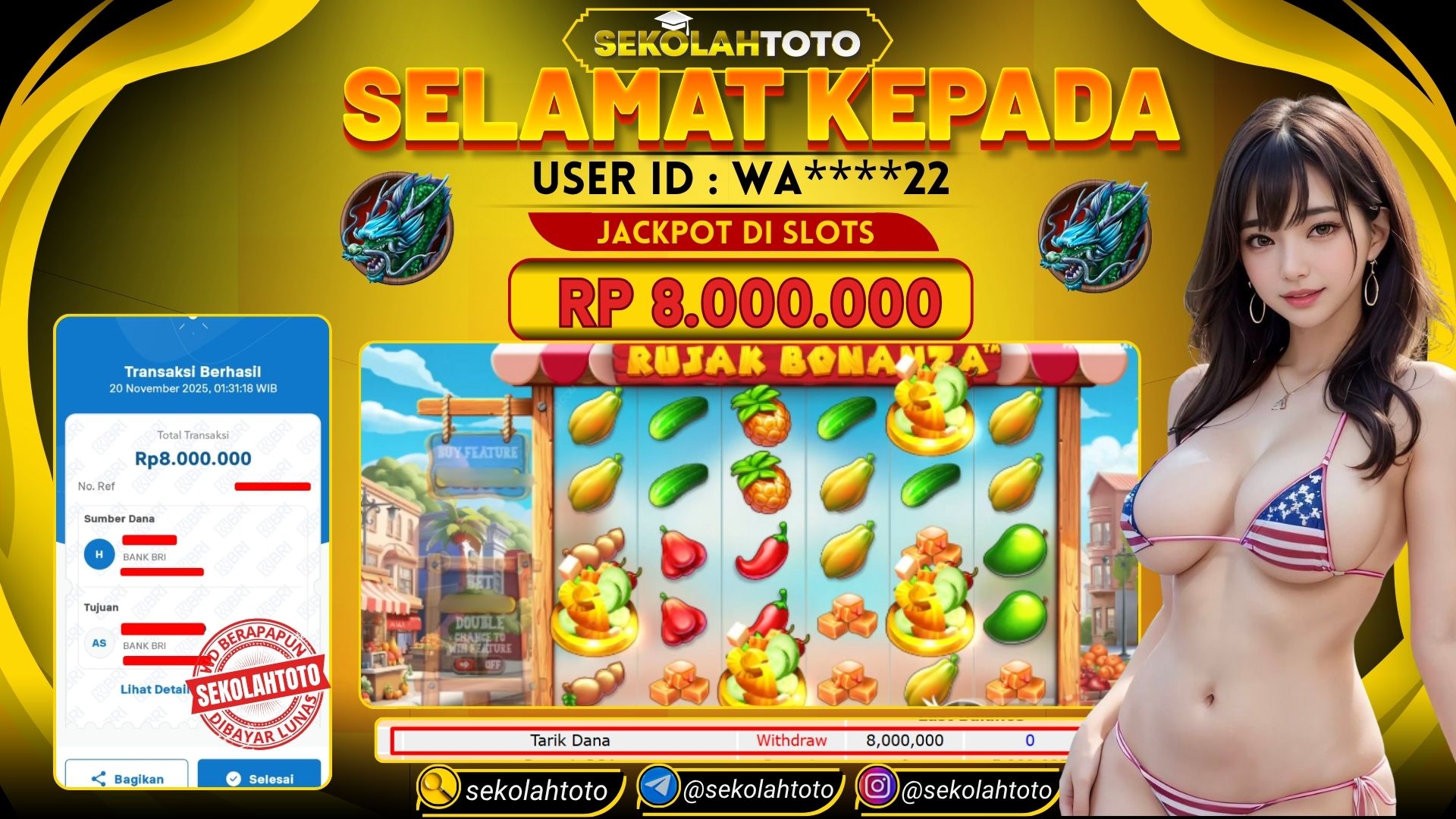 BUKTI PEMBAYARAN JACKPOT PRAGMATIC PLAY 20 November 2025 Posted by kepsektoto RUJAK BONANZA KAMIS , 20 NOVEMBER 2025 RP 8,000,000,- Selamat Kepada Pemenang. Salam JP Updated: 20 November 2025 at 06:27 ◀ Prediksi Togel Toto Macau Hari Ini BUKTI PEMBAYARAN JACKPOT PRAGMATIC PLAY ▶