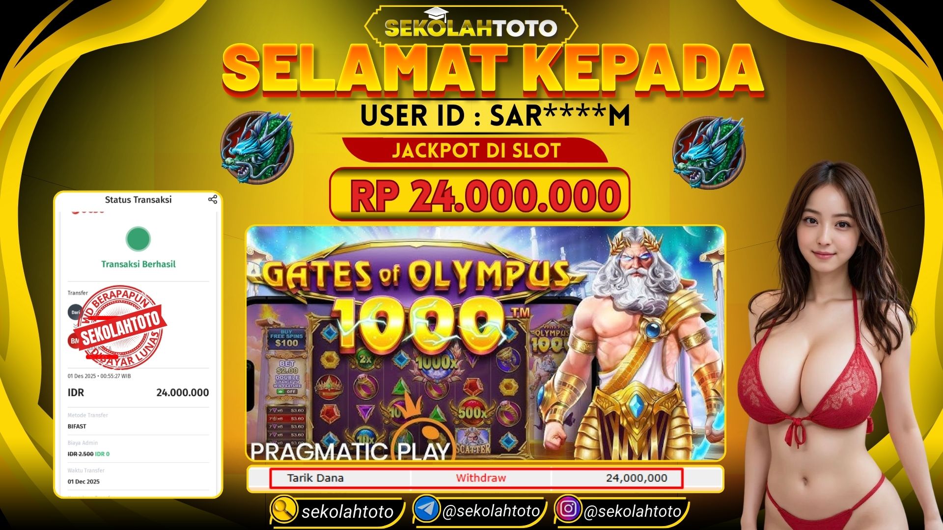 BUKTI PEMBAYARAN JACKPOT PRAGMATIC PLAY 1 Desember 2025 Posted by kepsektoto GATES OF OLYMPUS 1000 SENIN, 1 DESEMBER 2025 RP 24,000,000,- Selamat Kepada Pemenang. Salam JP Updated: 1 Desember 2025 at 06:36 ◀ BUKTI PEMBAYARAN JACKPOT PG SOFT Prediksi Togel Bullseye Pools Hari Ini ▶