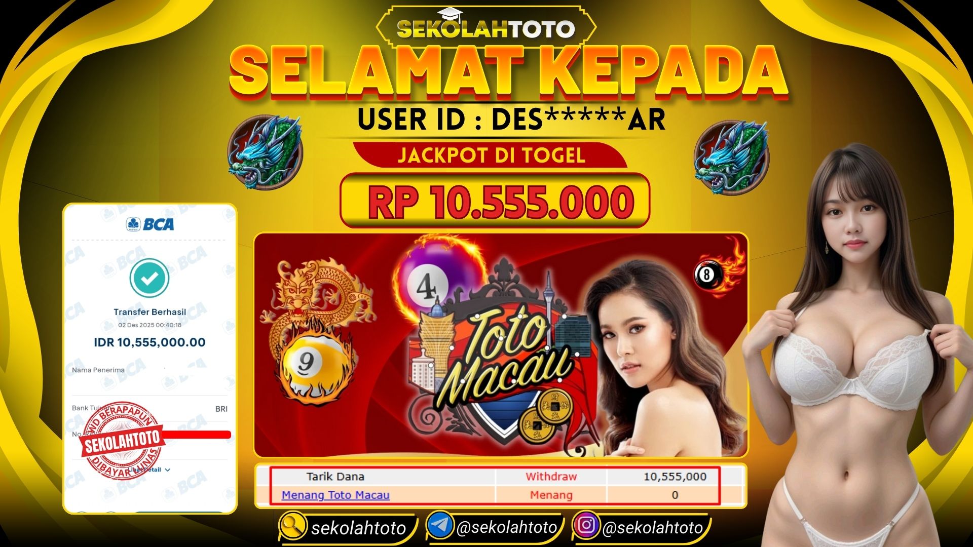 BUKTI PEMBAYARAN JACKPOT TOGEL 2 Desember 2025 Posted by kepsektoto TOTO MACAU SELASA, 2 DESEMBER 2025 RP 10,555,000,- Selamat Kepada Pemenang. Salam JP Updated: 2 Desember 2025 at 01:23 ◀ BUKTI PEMBAYARAN JACKPOT PG SOFT Prediksi Togel Bullseye Pools Hari Ini ▶