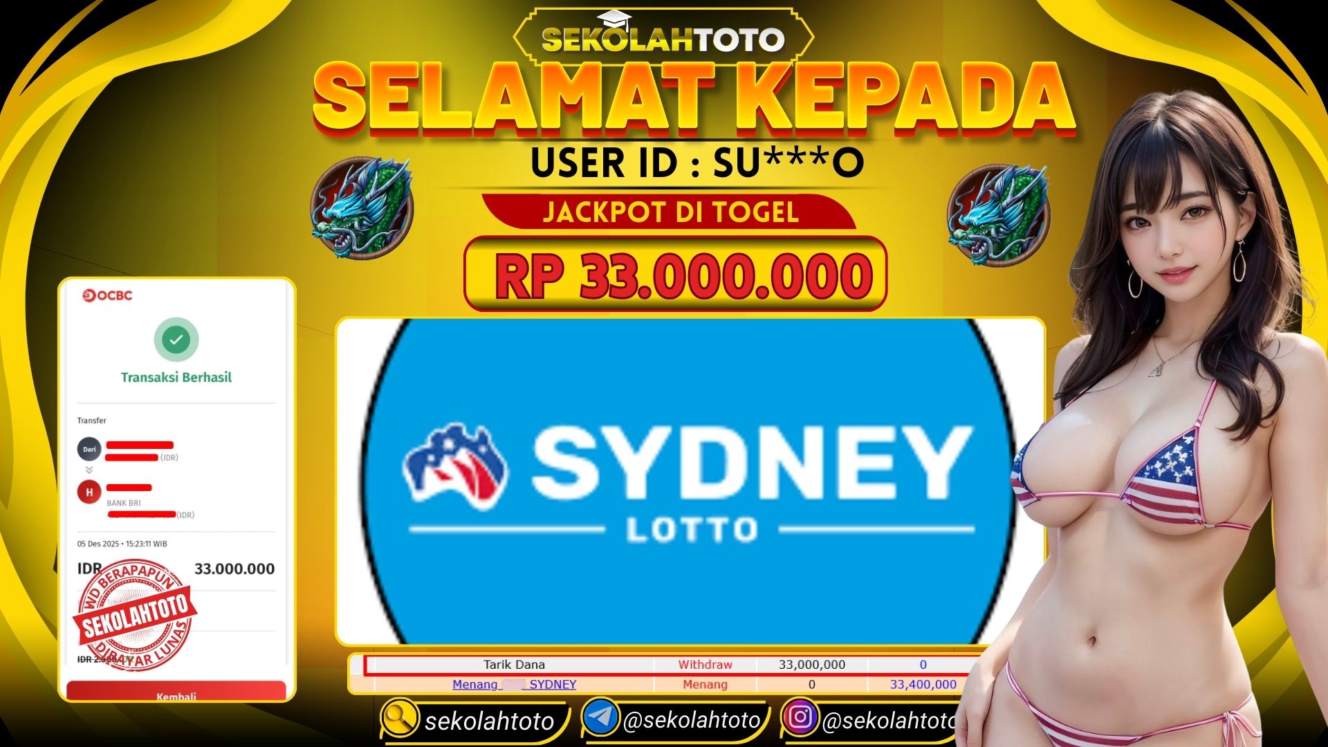 BUKTI PEMBAYARAN JACKPOT TOGEL 5 Desember 2025 Posted by kepsektoto SYDNEY LOTTO JUMAT, 5 DESEMBER 2025 RP 33,000,000,- Selamat Kepada Pemenang. Salam JP Updated: 5 Desember 2025 at 16:38 ◀ BUKTI PEMBAYARAN JACKPOT IDN LIVE Prediksi Togel Bullseye Pools Hari Ini ▶