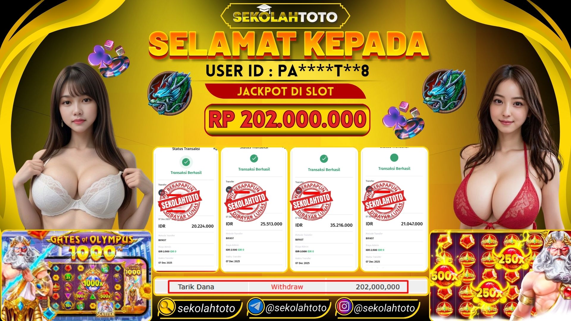 BUKTI PEMBAYARAN JACKPOT PRAGMATIC PLAY 7 Desember 2025 Posted by kepsektoto GATES OF OLYMPUS 1000 MINGGU, 7 DESEMBER 2025 RP 202,000,000,- Selamat Kepada Pemenang. Salam JP Updated: 7 Desember 2025 at 23:34 ◀ BUKTI PEMBAYARAN JACKPOT PG SOFT Prediksi Togel Bullseye Pools Hari Ini ▶
