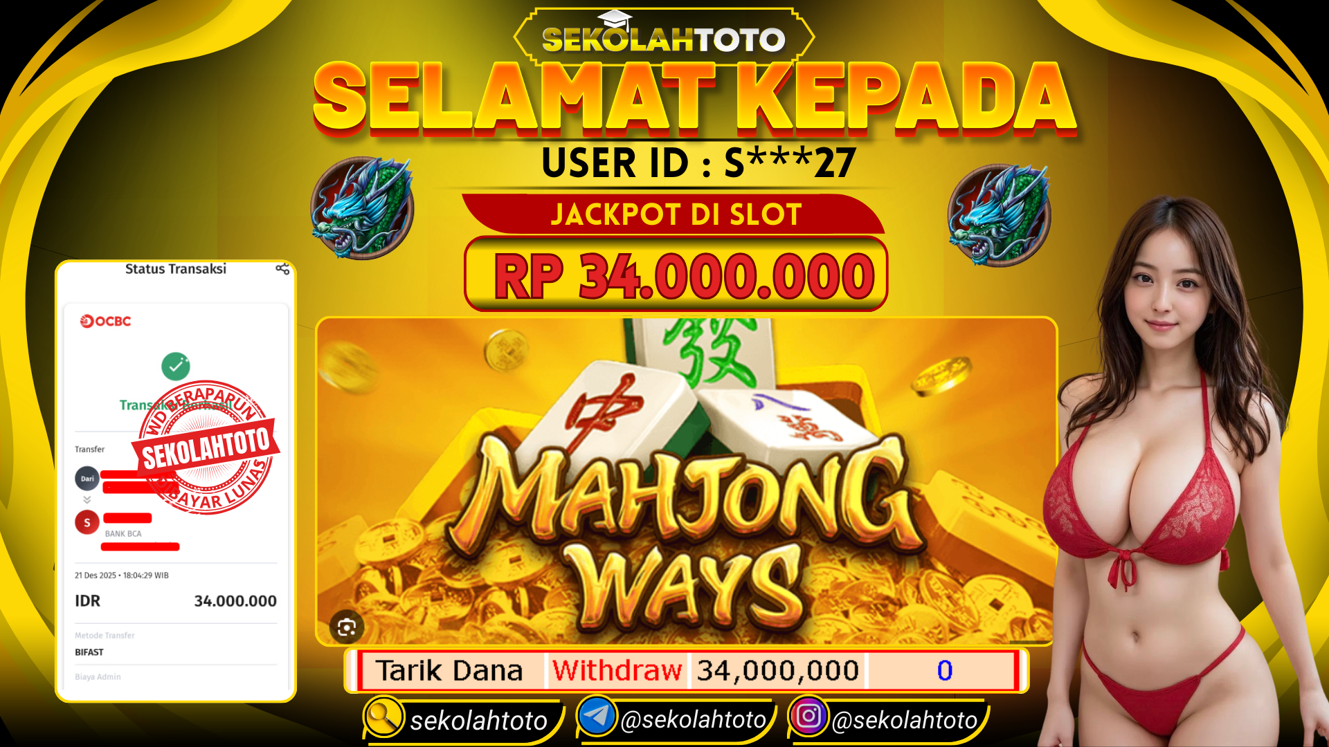 BUKTI PEMBAYARAN JACKPOT PG SOFT 21 Desember 2025 Posted by kepsektoto MAHJONG WAYS MINGGU , 21 DESEMBER 2025 RP 34,000,000,- Selamat Kepada Pemenang. Salam JP Updated: 21 Desember 2025 at 18:26 ◀ Prediksi Togel Toto Macau Hari Ini BUKTI PEMBAYARAN JACKPOT PG SOFT ▶