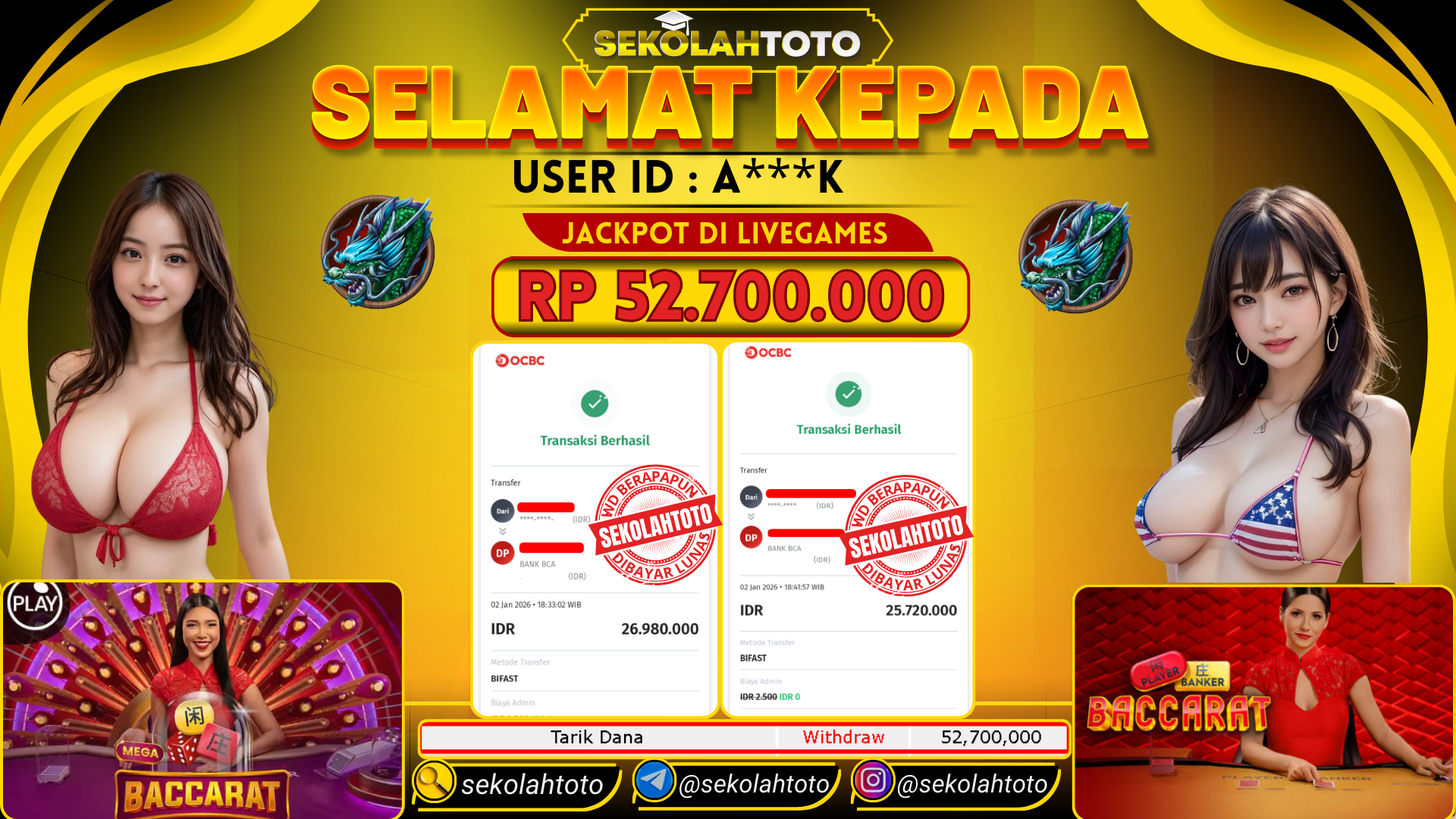 BUKTI PEMBAYARAN JACKPOT PRAGMATIC LIVE 2 Januari 2026 Posted by kepsektoto PP Live Baccarat A JUMAT, 02 JANUARI 2026 RP 52,700,000,- Selamat Kepada Pemenang. Salam JP Updated: 2 Januari 2026 at 19:05 ◀ Prediksi Togel Bullseye Pools Hari Ini BUKTI PEMBAYARAN JACKPOT TOGEL ▶