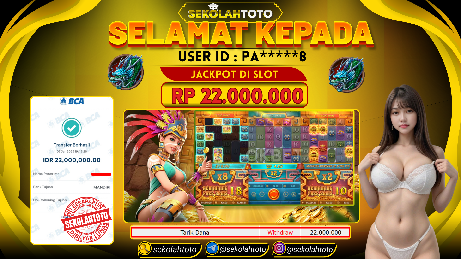 BUKTI PEMBAYARAN JACKPOT PG SOFT 7 Januari 2026 Posted by kepsektoto TREASURES OF AZTEC RABU, 07 JANUARI 2026 RP 22,000,000,- Selamat Kepada Pemenang. Salam JP Updated: 7 Januari 2026 at 20:15 ◀ BUKTI PEMBAYARAN JACKPOT TOGEL Prediksi Togel Kentucky Mid Hari Ini ▶