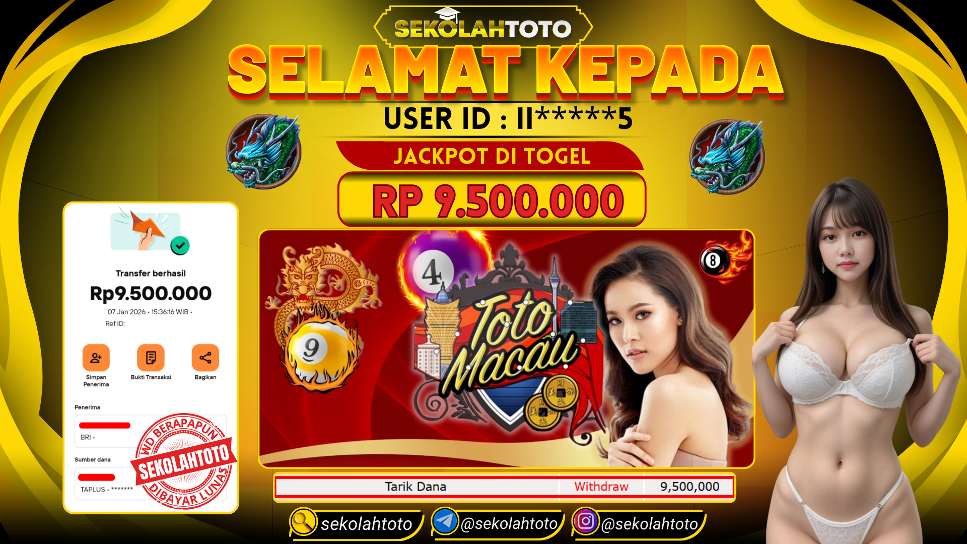 BUKTI PEMBAYARAN JACKPOT TOGEL 7 Januari 2026 Posted by kepsektoto TOTO MACAU RABU, 07 JANUARI 2026 RP 9,500,000,- Selamat Kepada Pemenang. Salam JP Updated: 7 Januari 2026 at 15:45 ◀ BUKTI PEMBAYARAN JACKPOT PRAGMATIC PLAY BUKTI PEMBAYARAN JACKPOT PG SOFT ▶