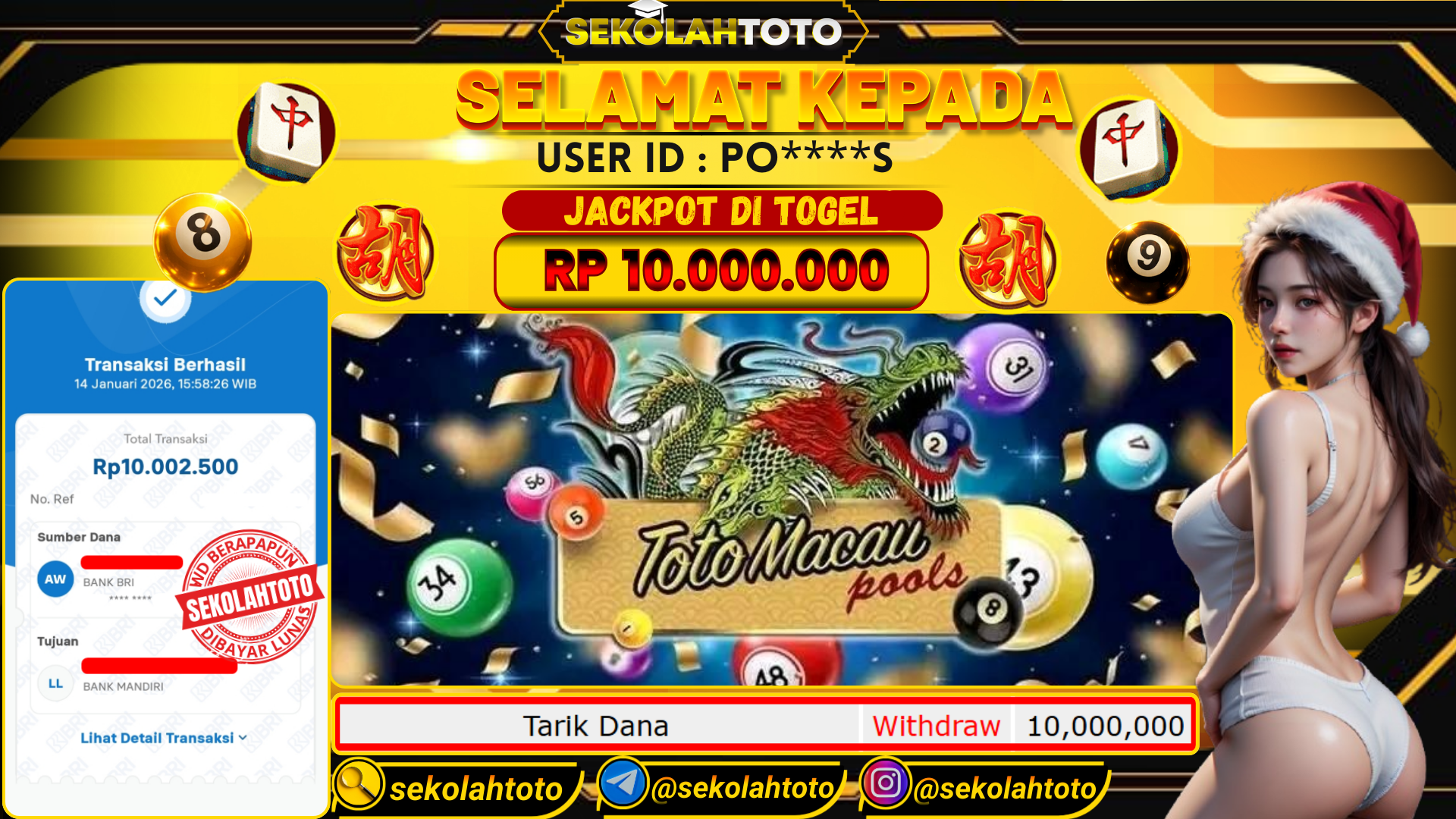 BUKTI PEMBAYARAN JACKPOT TOGEL 14 Januari 2026 Posted by kepsektoto TOTOMACAU 5D RABU, 14 JANUARI 2026 RP 10,000,000,- Selamat Kepada Pemenang. Salam JP Updated: 14 Januari 2026 at 16:14 ◀ BUKTI PEMBAYARAN JACKPOT PG SOFT BUKTI PEMBAYARAN JACKPOT PG SOFT ▶
