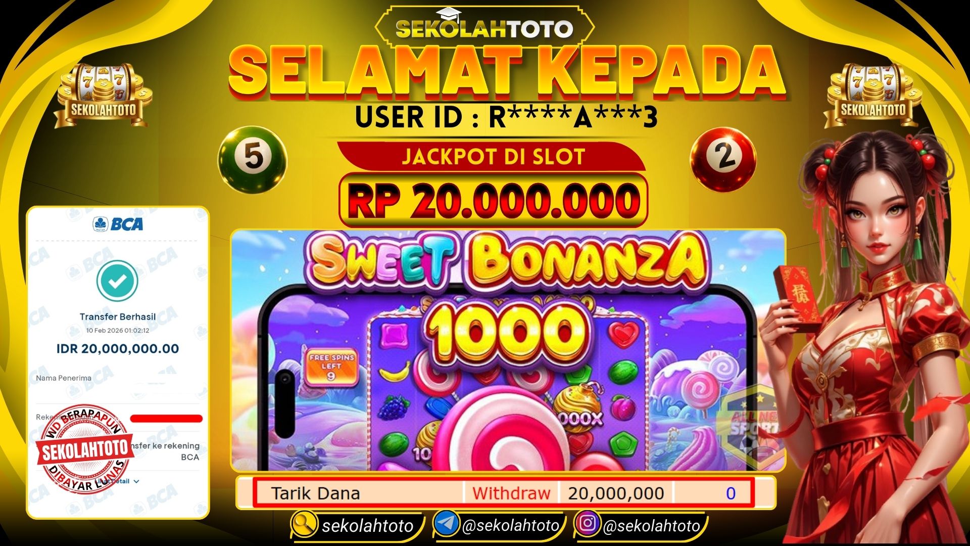 BUKTI PEMBAYARAN JACKPOT PRAGMATIC PLAY 10 Februari 2026 Posted by kepsektoto SWEET BONANZA 1000 SELASA, 10 FEBRUARI 2026 RP 20,000,000,- Selamat Kepada Pemenang. Salam JP Updated: 10 Februari 2026 at 01:17 ◀ Prediksi Togel PCSO Hari Ini BUKTI PEMBAYARAN JACKPOT PRAGMATIC PLAY ▶